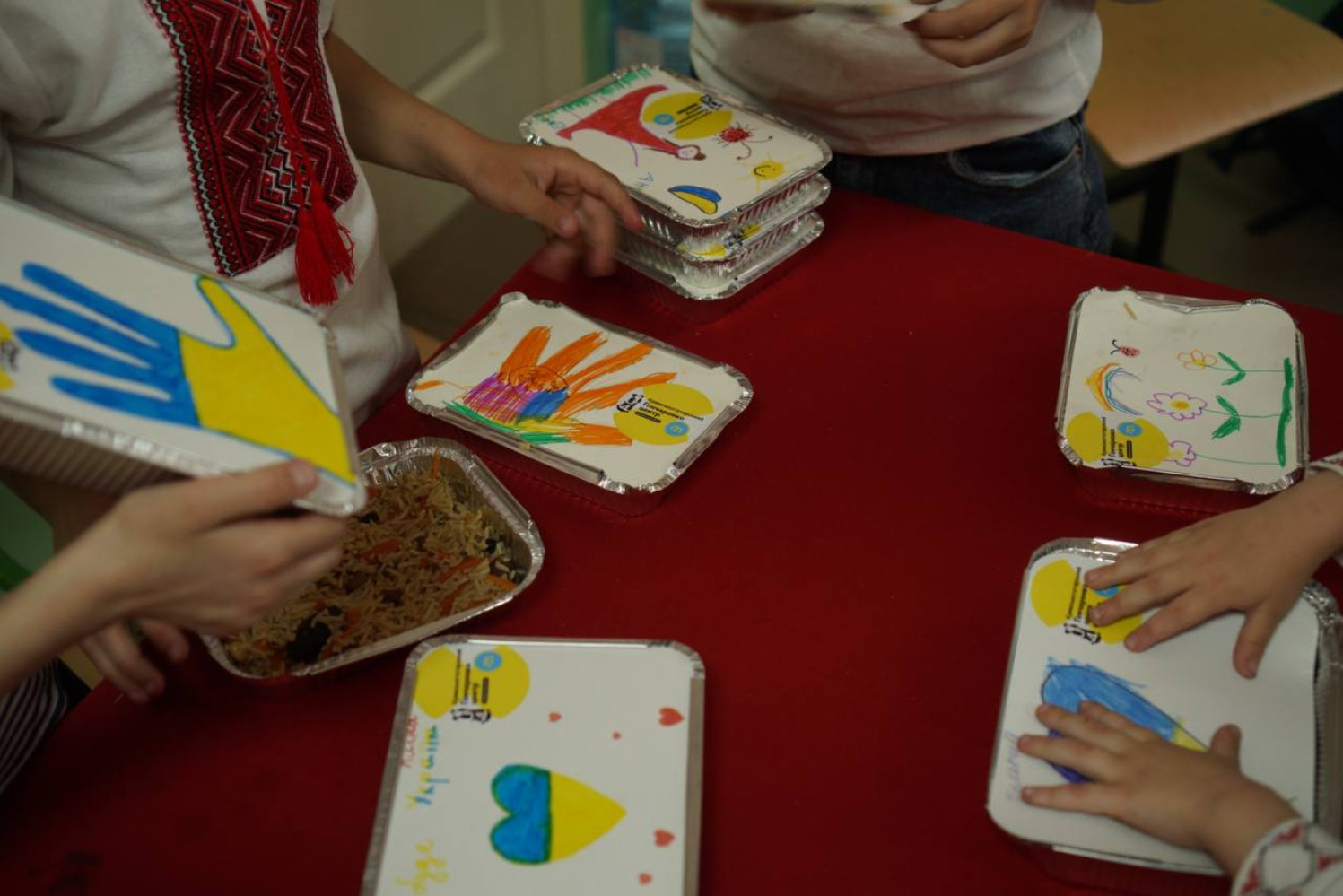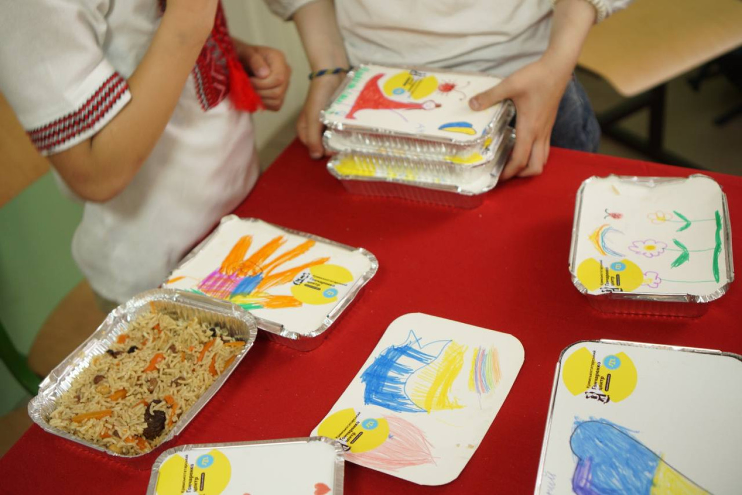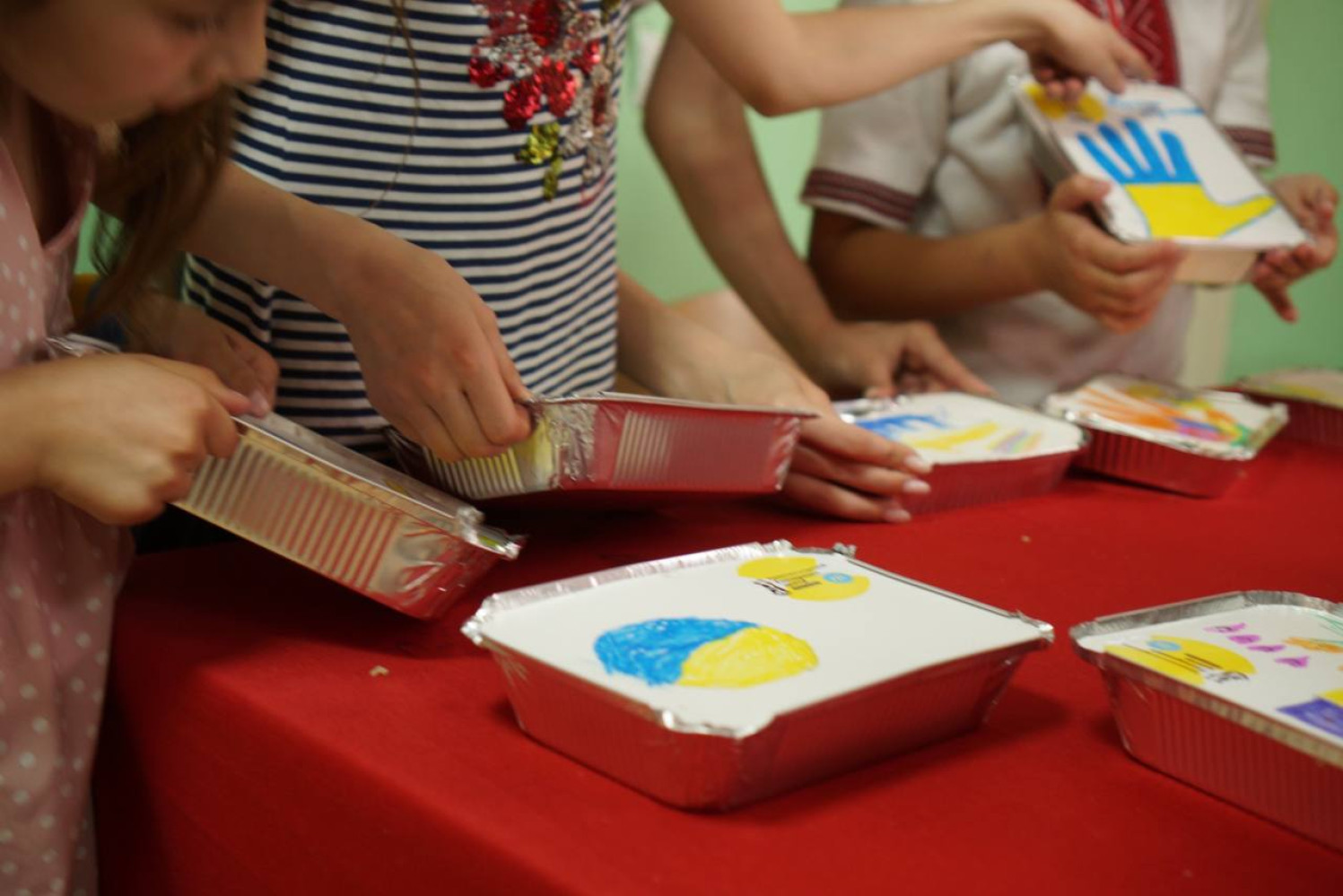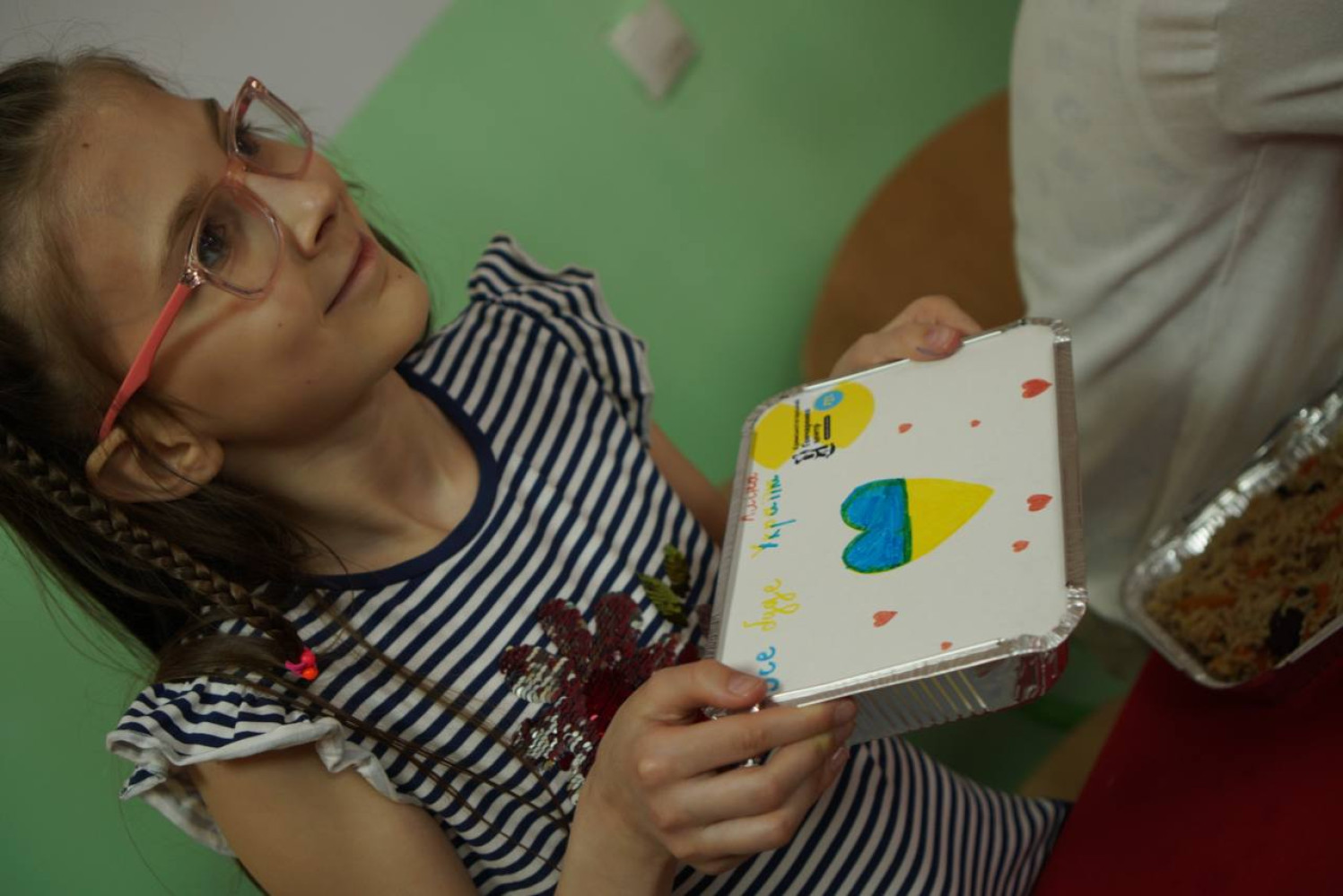 В крымскотатарском Гончаренко центре в Одессе снова готовили горячие обеды для защитников УкраиныВ крымскотатарском Гончаренко центре в Одессе вновь приготовили партию горячих обедов для Сил обороны. Но в этот раз, кроме традиционного блюда – плова, волонтеры с маленькими украинцами подготовили и памятный сюрприз. Сердечки, цветочки, ладошки в патриотических сине-желтых цветах появились на упаковках ланчбоксов. Как рассказывает волонтер Гончаренко центра Сабина Никитенко, детские рисунки подбадривают бойцов и придают им сил защищать нашу землю. «Мы с детками решили разукрасить посуду, в которую мы положим плов. Дети рисуют ладошки, флаг Украины — то, что у них на душе. Детки хотят передать нашим военным мысль, что мы все вместе. Что мы их поддерживаем и готовы им помогать как можем. Это очень подбадривает наших защитников, а также влияет на патриотическое воспитание наших детей. И еще наши военные попросили написать на флаге Украины пожелания от детей», — говорит Сабина. Лене 9 лет, ее рисунок — это сине-желтая ладошка. Как объясняет девочка, она сделала рисунок в цветах флага Украины. Маленькая украинка хочет таким образом передать защитникам пожелания, чтобы они никогда не болели, победили врагов и скорее возвращались с войны живыми. Юный посетитель центра Валера уверяет всех, что мы обязательно победим. Наталья Колмацу вместе с маленьким сыном не первый раз посещают Гончаренко центр. Они вместе волонтерят – нарезают ленты для маскировочных сеток и уверены, что сейчас важно помогать нашим защитникам. «Мы решили с детками сделать приятное для наших военных и разукрасить крышечки для пищевых коробочек. Чтобы им было приятно и кушать, и смотреть. Дети очень прониклись этим и готовили свои рисунки», — рассказывает Наталья. Когда до приготовления плова оставались уже считанные минуты, дети взялись расписывать флаг. На сине-желтом полотне появились сердечки, маленькие ручки и добрые пожелания. Все это отвезут военным, бойцам теробороны и представителям Национальной полиции. Военные со своей стороны тоже подготовили сюрприз – лично приехали забрать у маленьких украинцев угощения и повидаться с ними. Дети с улыбками отдавали коробочки с едой и благодарили за защиту. Помітили помилку? Виділяйте слова з помилкою та натискайте control-enter |