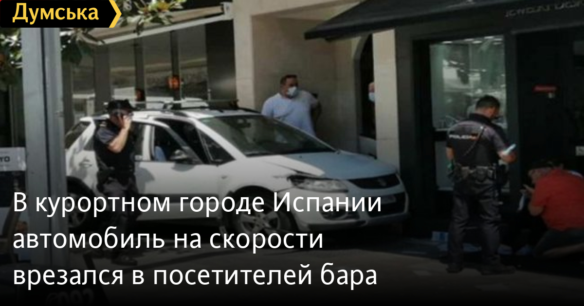 Автомобиль на скорости врезался в посетителей бара на курорте Коста-дель-Соль в испанской Марбелье. Как сообщают местные СМИ, травмы получили не менее 9 человек, одна женщина госпитализирована в тяжелом состоянии. Отмечается, что наезд совершил 30-летний гражданин Испании. Полиция уже задержала его. Власти проверяют версию теракта.