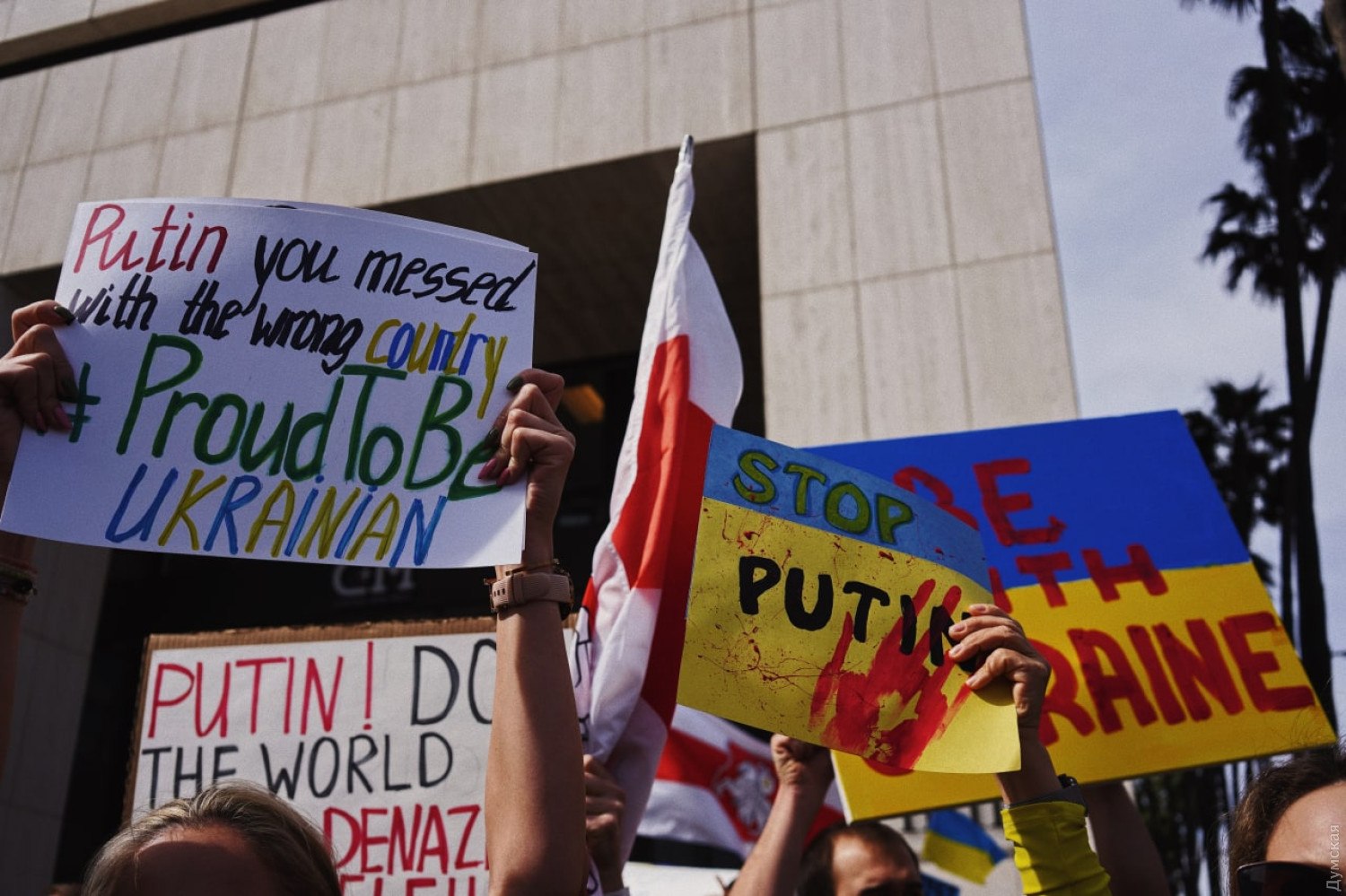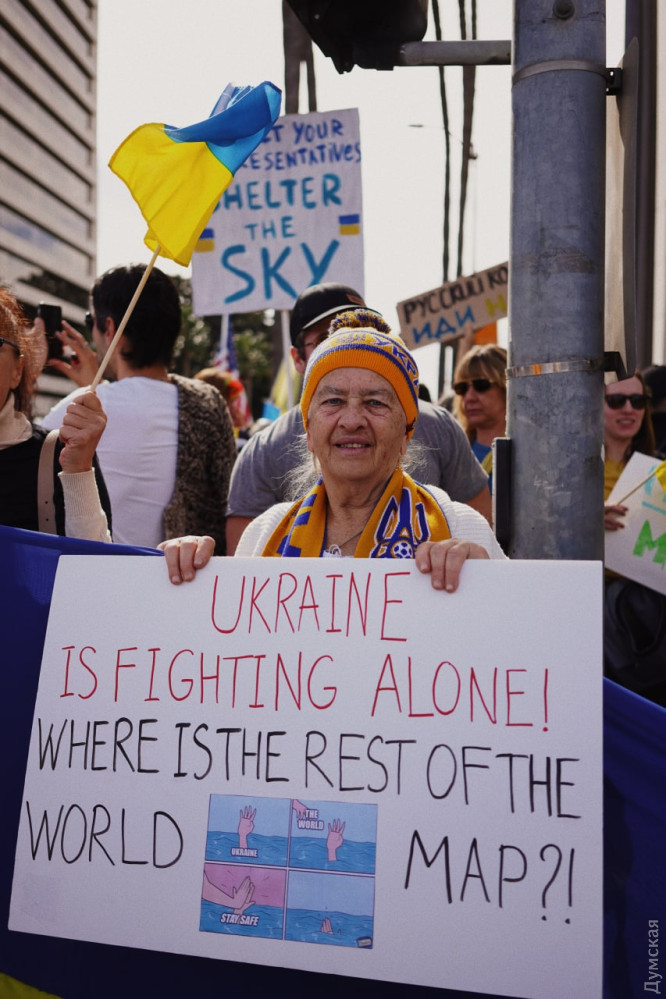 Массовый митинг в поддержку Украины прошел сегодня на улицах Лос-Анджелеса. Люди вышли с национальными флагами и плакатами с требованием к мировой общественности увеличить помощь нашей стране, сражающейся с нацистской Россией. СМЕРТЬ РОСІЙСЬКИМ ОКУПАНТАМ! Помітили помилку? Виділяйте слова з помилкою та натискайте control-enter |