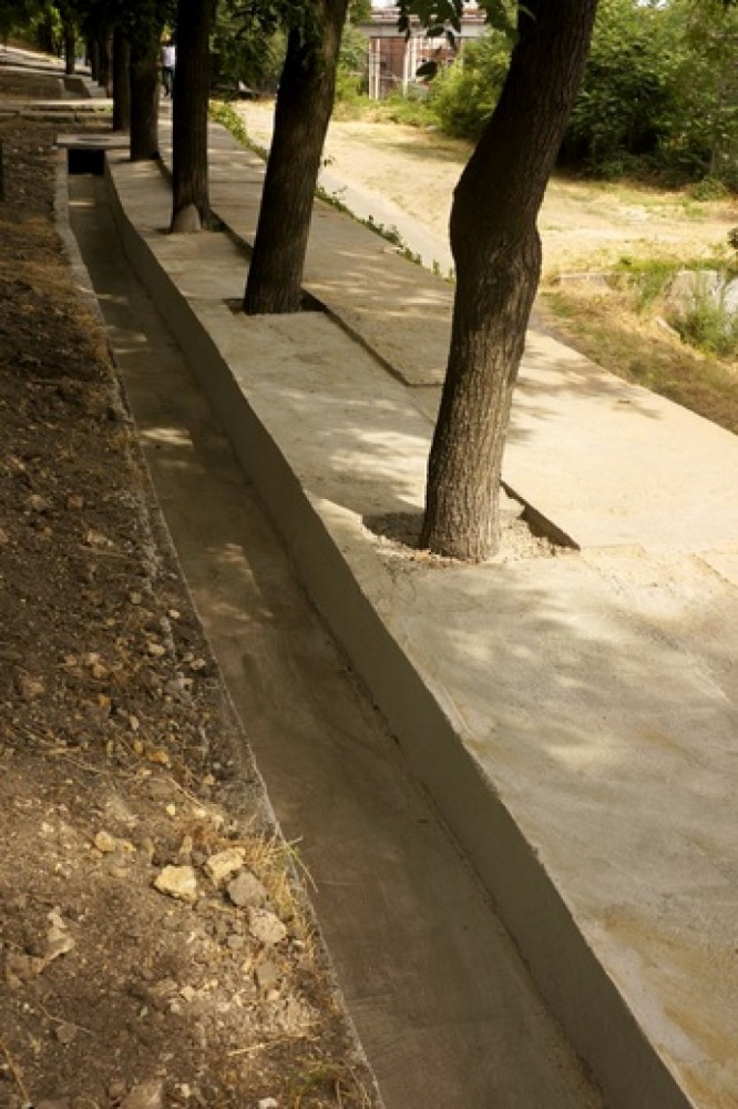 опять безхозное разбазаривание бюджета. слабо сварить решетки на желоба? а деревья с бетоном справятся. и еще как!!! учитывая его качество. т.ч. через два года можно опять все переделывать
