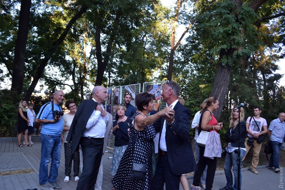 Сегодня в рамках празднования 222-летней годовщины основания Одессы, мэр города Геннадий Труханов и мэр Регенсбурга Йоахим Вольбергс открыли скамейку с символом города-побратима Регенсбурга. В ходе открытия новой достопримечательности мэры посадили по кусту роз и пошутили о своей внешней схожести — оба градоначальника одного типа телосложения без растительности на голове и в похожих костюмах. Мэр Регенсбурга Йоахим Вольбергс даже в шутку предложил Геннадию Труханову поменяться местами. Кроме того вице-мэр польского города-побратима Лодзь Кшиштоф Пентковский предложил Труханову на следующий год установить скамейку с символом своего города и подарил фото скамейки, которую они планируют установить в Одессе. Фото Андрей Колисниченко СМЕРТЬ РОСІЙСЬКИМ ОКУПАНТАМ! ![]() Вице-мэр польского города-побратима Лодзь Кшиштоф Пентковский подарил мэру Одессы фото скамейки с символом своего города Помітили помилку? Виділяйте слова з помилкою та натискайте control-enter |