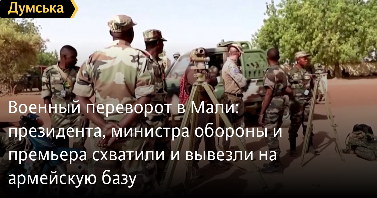 Военный переворот в Мали: президента, министра обороны и премьера схватили и вывезли на армейскую базуВ Республике Мали на западе Африки в результате военного переворота были арестованы временный глава государства Бах Ндау, премьер-министр Моктар Уан и новый министр обороны Сулейман Дукур. Об этом сообщает Reuters. Как стало известно, политиков схватили и вывезли за пределы столицы Мали Бамако. Есть информация, что их держат на военной базе в городе Кати на юго-западе страны. Уточняется, что президента, премьера и министра арестовали спустя несколько часов после того, как двух военных отстранили от должностей в парламенте в результате кадровых перестановок. До этого военнослужащие уже были недовольны новым составом Кабинета министров Мали, а увольнения усугубили ситуацию. Так, предыдущий состав правительственного органа распустили 14 мая. При этом в новом Кабмине военным дали только четыре места, это вызвало у них возмущение. Также возмутителям порядка не понравилось то, что были назначены новые главы МВД и министерства обороны. Беспорядки осудили Африканский союз, США, ЕС и Британия. В свою очередь, в ООН потребовали отпустить задержанных в результате мятежа руководителей страны и подчеркнули, что организация поддерживает связь со всеми сторонами конфликта ради восстановления власти в стране. «Я глубоко обеспокоен новостями о задержании гражданских лидеров малийской власти. Призываю к их немедленному освобождению и установлению спокойствия», — написал в Твиттере генсекретарь ООН Антониу Гуттериш. Отметим, что за последний год это уже второй военный переворот в Мали. В прошлый раз, в августе 2020 года в Мали военные отстранили от власти управляющего тогда страной президента Ибрагима Бубакара.