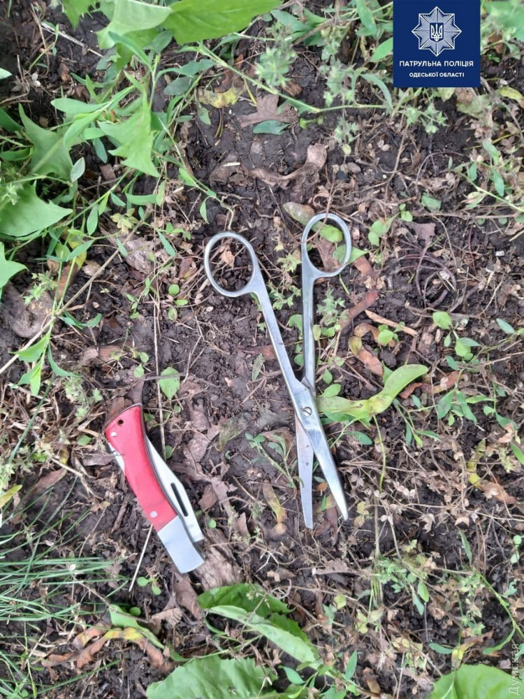 Полицейские вскоре заметили на улице мужчину, похожего на описание грабителя. При задержании у него изъяли сумку с похищенными вещами, нож и ножницы.