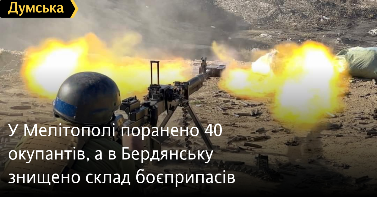 У Мелітополі поранено 40 окупантів, а в Бердянську знищено склад боєприпасів40 російських окупантів поранили українські захисники внаслідок точкових ударів по Мелітополю Запорізької області. А в Бердянську підірвали російський склад боєприпасів. Про це повідомляє Генштаб Збройних сил України. У населеному пункті Воскресенка поранено близько 30 окупантів, у Василівці — до 25. Кількість загиблих, яку окупанти намагаються приховати, уточнюється. СМЕРТЬ РОСІЙСЬКИМ ОКУПАНТАМ! Помітили помилку? Виділяйте слова з помилкою та натискайте control-enter |