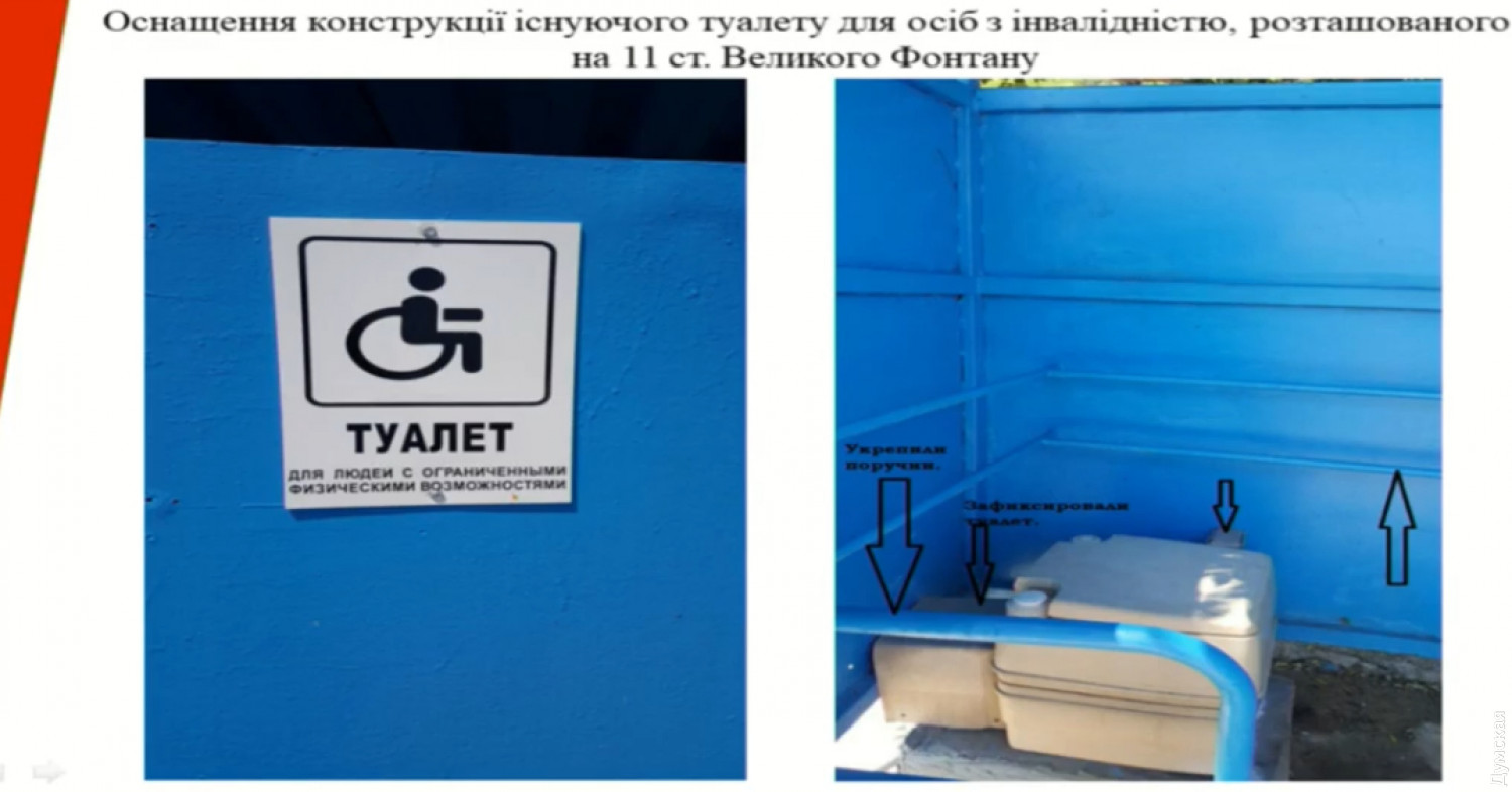 Грустная история с благоустройством пляжа для инвалидов на 11-й станции Фонтана продолжается. На прошлой неделе директор департамента экологии и развития рекреационных зон Виталий Денисов получил выволочку за отсутствие в местном туалете поручней. Неделю спустя он отчитался об успехах. По словам Денисова, для того, чтобы решить проблему временного туалета, был проведен ряд встреч с представителями разных организаций маломобильных групп населения. «Мы пришли к согласию о том, что нужно было просто доварить поручень, и самое главное, укрепить корпус самого туалета, чтобы он не шатался. Все это и было сделано», — заявил чиновник. Кроме того, Виталий Денисов продемонстрировал слайды хода строительства нового стационарного туалета, что вызвало раздражение у мэра Геннадия Труханова. «Давайте, чтобы это было первый и последний раз, когда у нас в середине сезона что-то не работает», — заявил он. Следует отметить, что на прошлом аппаратном совещании Виталий Денисов заявил, что пляж для инвалидов будет благоустроен до конца сезона, то есть реально им воспользоваться можно будет только в 2020 году. СМЕРТЬ РОСІЙСЬКИМ ОКУПАНТАМ! Помітили помилку? Виділяйте слова з помилкою та натискайте control-enter |