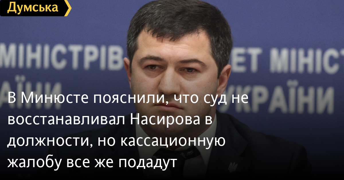 В Минюсте пояснили, что суд не восстанавливал Насирова в должности, но кассационную жалобу все же подадутМинистр юстиции Украины Денис Малюська в своем Фейсбуке сообщил, что решение Шестого апелляционного административного суда, который оставил в силе решение суда первой инстанции, о незаконном увольнении Романа Насирова с должности председателя Государственной фискальной службы Украины, не означает, что Насирова восстановили в должности. Он отметил, что дело о требовании вернуть главу ГФС на его рабочее место и компенсировать потерянный заработок было приостановлено по просьбе самого истца, то есть Романа Насирова. «Суд действительно оставил без изменений решение суда первой инстанции и подтвердил незаконность распоряжения Кабмина об увольнении господина Насирова с должности главы ГФС. То есть текущее состояние: увольнение признано незаконным, принудительного восстановления в должности нет», — пояснил министр юстиции. Он добавил, что сейчас в министерстве ожидают текста постановления суда, чтобы решить, что делать дальше, и уточнил, что кассационная жалоба точно будет подана. Напомним, САП обвинила Насирова в 2017 году в нанесении государству убытков в размере 2 млрд гривен. Он был арестован с залогом в 100 млн грн., который его жена внесла через неделю. После этого Кабмин уволил его с должности главы ГФС, а в декабре 2018 года Окружной административный суд Киева признал это решение незаконным. СМЕРТЬ РОССИЙСКИМ ОККУПАНТАМ! Заметили ошибку? Выделяйте слова с ошибкой и нажимайте control-enter |