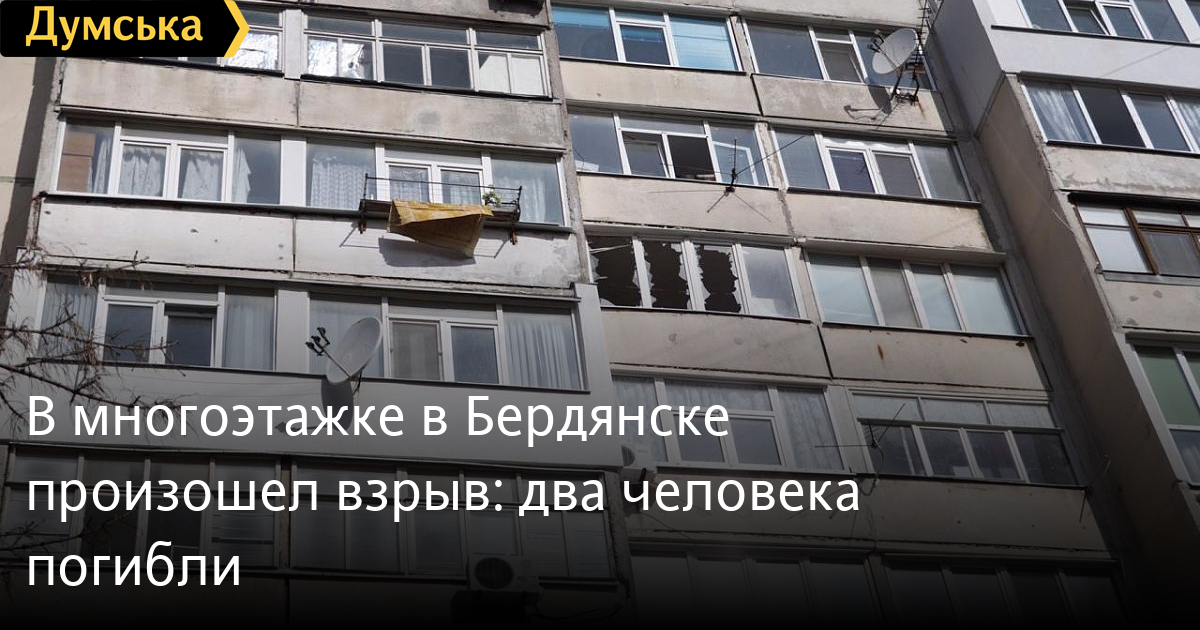 Утром 10 марта в Бердянске Запорожской области на седьмом этаже девятиэтажного дома по улице Волонтеров,156 произошел взрыв. Об этом сообщают местные СМИ со ссылкой на полицию. По имеющейся информации, в результате происшествия погибли два человека — мужчины 50 и 60 лет. Еще одна 51-летняя женщина госпитализирована в тяжелом состоянии. В полиции области отметили, что прибывшие на место правоохранители установили, что в одной из квартир произошел взрыв неизвестного устройства. Правоохранители добавили, что пока вопрос о правовой квалификации случившегося не решен, так как сначала нужно понять, что именно взорвалось. Фото — Бердянск 24 СМЕРТЬ РОССИЙСКИМ ОККУПАНТАМ! Заметили ошибку? Выделяйте слова с ошибкой и нажимайте control-enter |