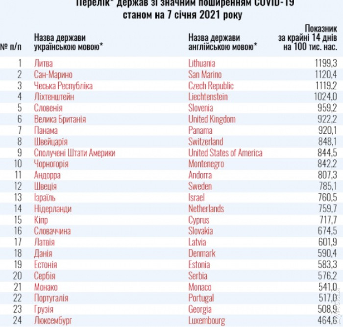 В Министерстве здравоохранения Украины обновили список стран «красной зоны». Список значительно расширился по сравнению с предыдущим периодом — с 49 до 78 стран. Так, в «красной зоне» находятся Норвегия, Бельгия, ОАЭ, Босния, Канада, Франция, Испания, Ирландия, Австрия, Россия, Турция. В «зеленую зону» входят 116 стран, среди которых Греция, Казахстан, Мальдивы, Финляндия, Япония, Шри-Ланка, Индонезия, Киргизстан, Исландия, Куба, Индия, Египет, Доминикана, Таиланд, Австралия и другие. Отмечается, что по возвращении из стран «красной зоны» необходимо уйти на самоизоляцию на 14 дней с помощью приложения «Дія» или в течение суток сделать ПЦР-тест. В случае отрицательного результата самоизоляция не нужна. Также можно приехать с готовым тестом, сделанным не ранее чем за 48 часов до пересечения границы. СМЕРТЬ РОСІЙСЬКИМ ОКУПАНТАМ! Помітили помилку? Виділяйте слова з помилкою та натискайте control-enter |