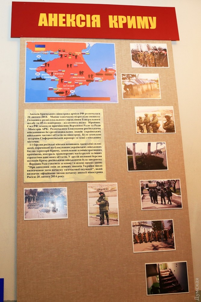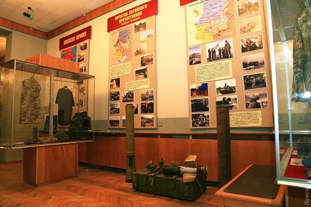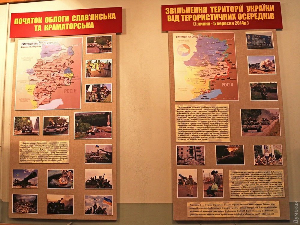Развалины ДАПа и блокпост с пулеметом Максима: в одесском военно-историческом музее открыли зал войны на востоке УкраиныВ военно-историческом музее оперативного командования «Юг» Сухопутных войск Украины на Пироговской улице открылся новый зал. Он полностью посвящен боевым действиям на востоке Украины, которые начались после захвата Российской Федерацией украинского Крыма. Экспозиция, которую сотрудники музея, военнослужащие и любители военной истории создавали с 2014 года, разместилась на третьем этаже музея. В зале есть две исторические инсталляции. Одна из них изображает развалины Донецкого аэропорта, вторая — украинский блокпост со всеми атрибутами, включая патронные ящики, маскировочную сеть, мешки с песком и даже реальное вооружение. Из бойницы выглядывает советская модернизация пулемета Максима — создатели экспозиции заверили, что такие артефакты тоже участвовали в боевых действиях. Стены зала украшают большие стенды, на которых запечатлена вся история войны с Россией — аннексия Крыма, столкновения на границе, бои за Саур-Могилу, Славянск, Краматорск, за Донецкий аэропорт и наступление на Дебальцево. В экспозиции много фотографий, она хорошо документирована, но предстоит еще большая работа с авторами фото, чтобы подписать тех, кто на них изображен. «Мы не останавливаемся на достигнутом, есть еще много страниц в этой войне, о которых мы знаем очень мало. Для таких моментов мы специально оставили место, чтобы впоследствии сделать экспозицию более полной», — говорит заведующая музеем Наталья Югова. Фото Сергея Смоленцева СМЕРТЬ РОСІЙСЬКИМ ОКУПАНТАМ! Помітили помилку? Виділяйте слова з помилкою та натискайте control-enter |