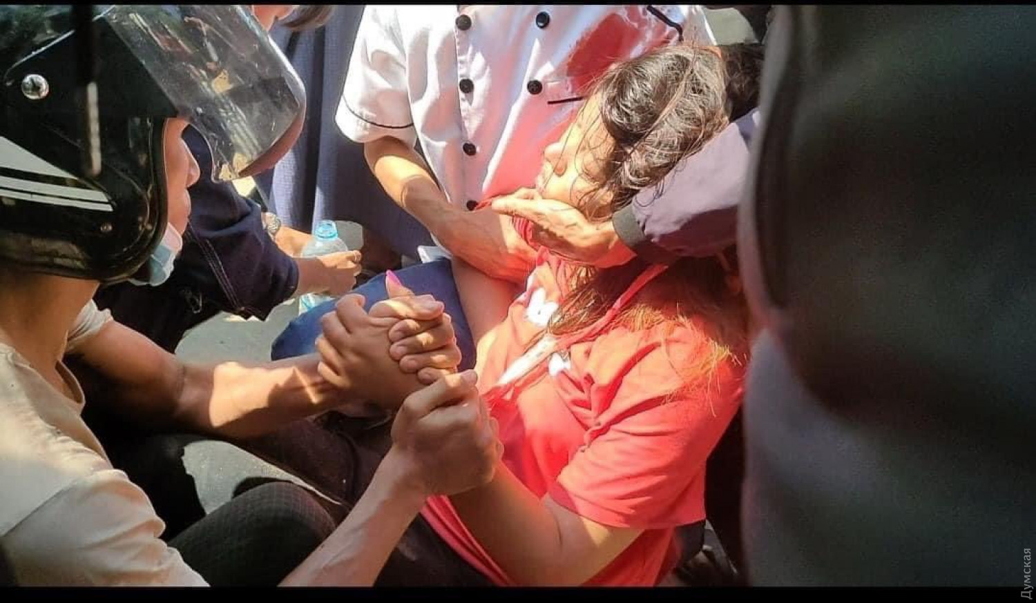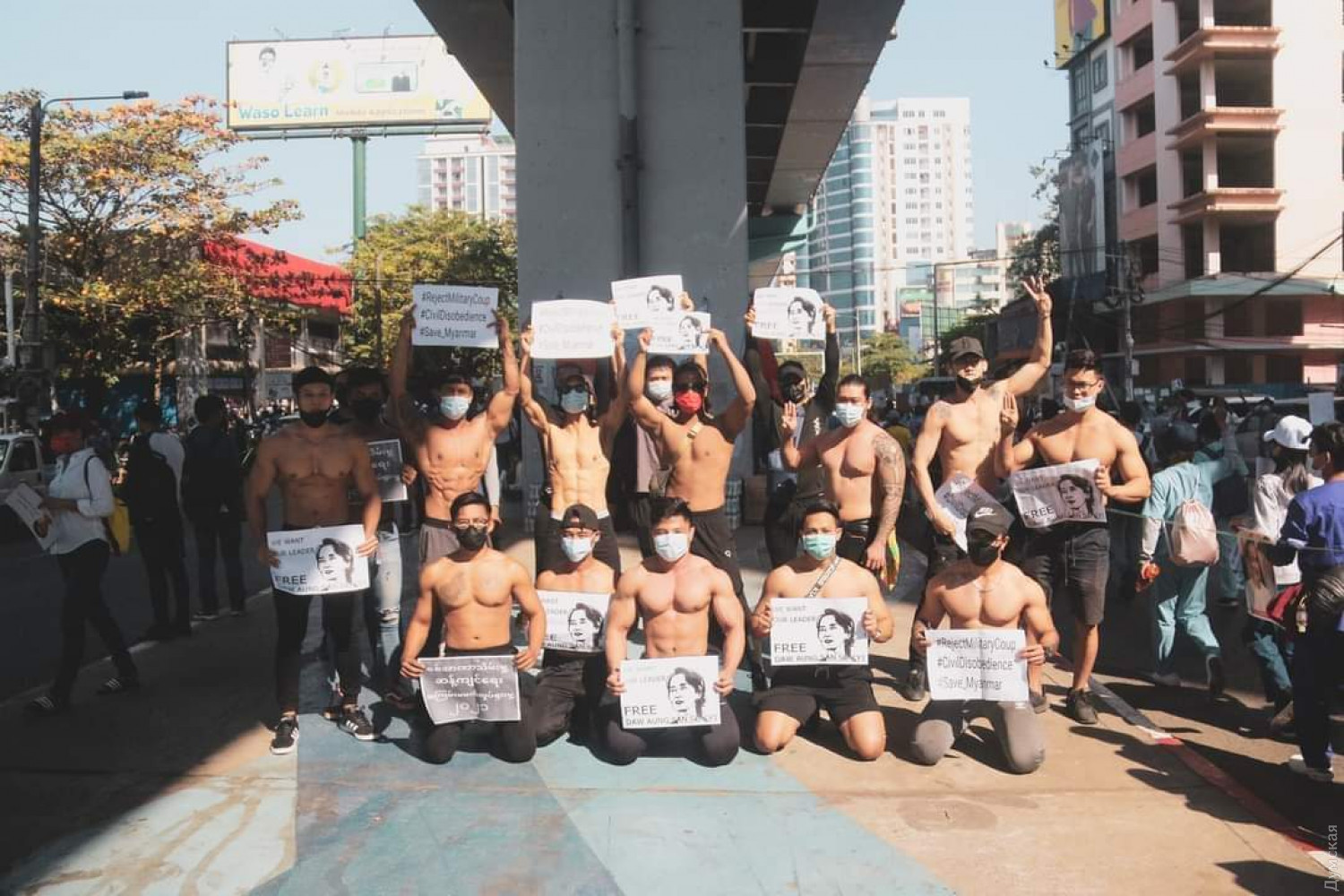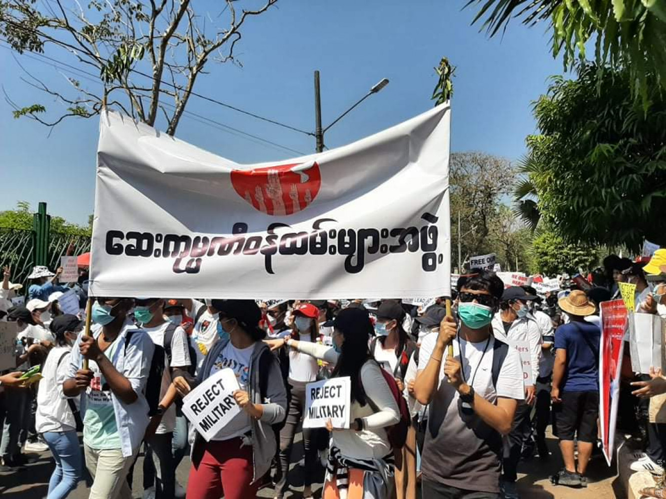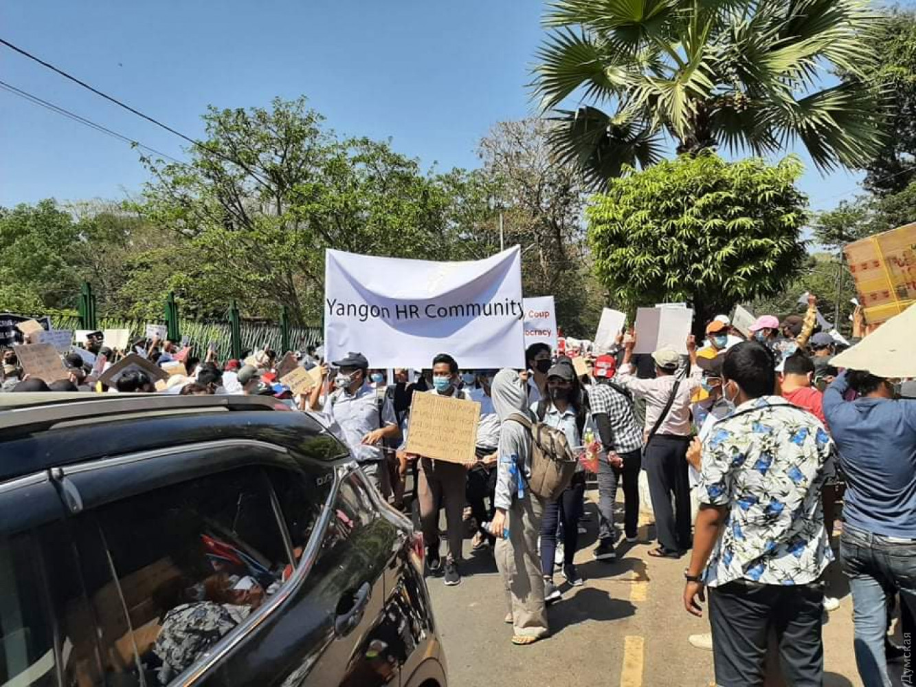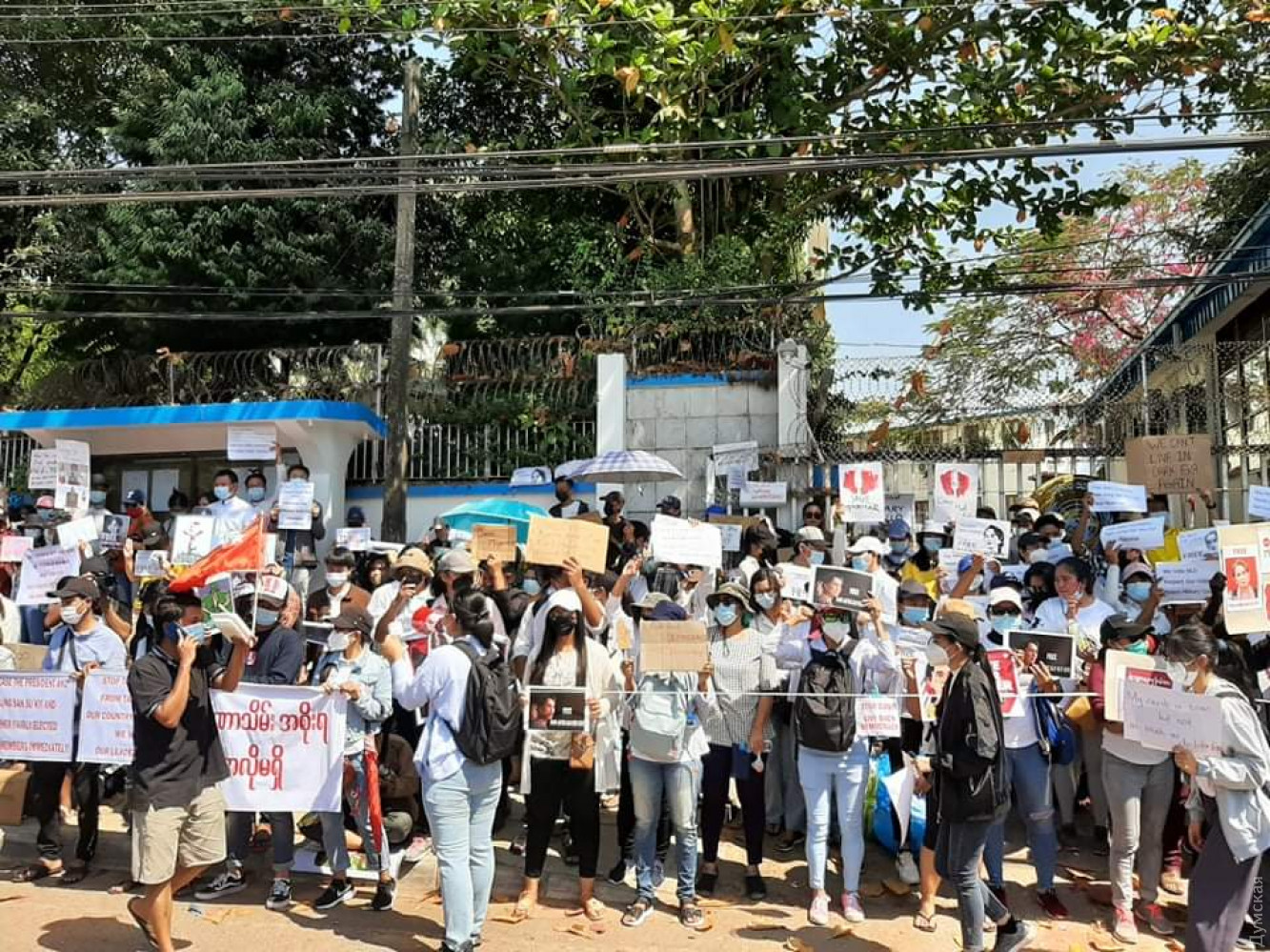 В крупнейшем городе страны Янгона молодежь устроила креативную акцию протеста — на улицы выходили невесты, бодибилдеры. Отмечается, что количество протестующих увеличилось значительно после того, как правоохранители стали использовать против демонстрантов водометы и резиновые пули. При разгоне митингующих как минимум два человека были ранены, сообщает CNN. Так, пострадал молодой мужчина, который получил огнестрельное ранение в грудь, а молодая женщина была ранена в голову пулей, пробившей мотоциклетный шлем. В ряде городов полицейские встали на сторону протестующих. В частности, в столице штата Кая Лойко, 40 правоохранителей вышли с транспарантом «Члены полиции Мьянмы стоят с гражданскими». Другие офицеры размахивали плакатами с надписью: «Нам не нужна военная диктатура». В Найпйитави к протестам присоединились сотни государственных служащих, врачи, учителя и железнодорожники. А в это время военные власти страны ограничили проведение собраний и ввели комендантский час с 20:00 до 4:00 во всех крупных городах страны, включая столицу Нейпьидо и крупнейший город Мьянмы Янгон. СМЕРТЬ РОСІЙСЬКИМ ОКУПАНТАМ! Помітили помилку? Виділяйте слова з помилкою та натискайте control-enter |