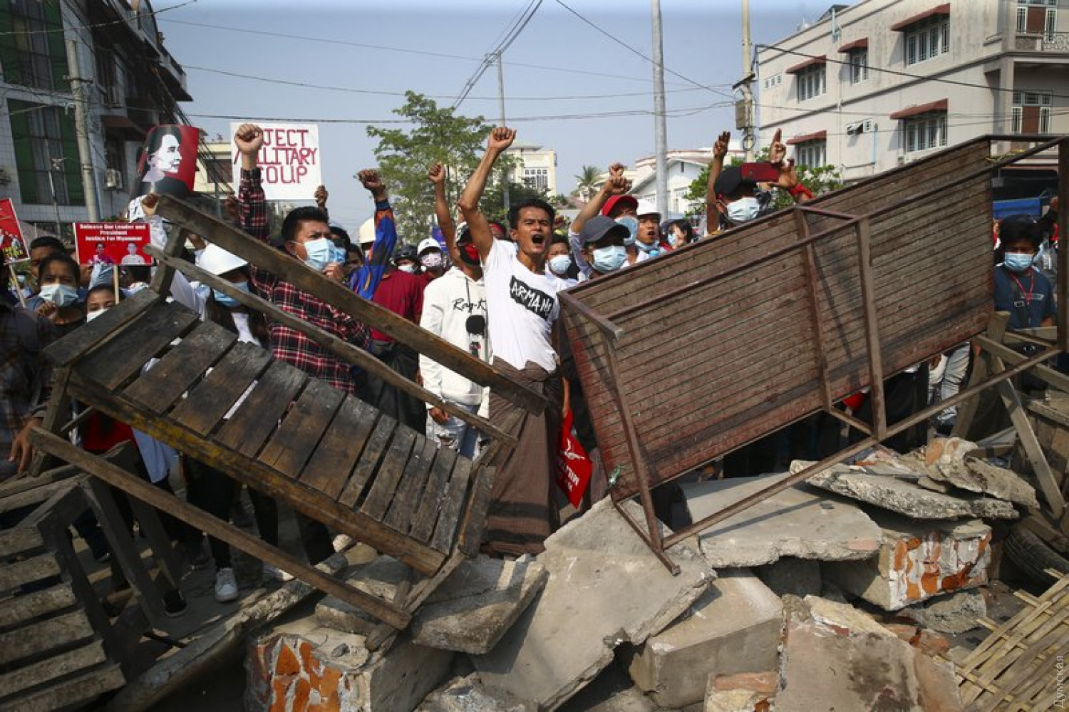 Переворот в Мьянме: силовики стреляют по демонстрантам, почти 20 погибших и 30 раненыхПолиция Мьянмы применила оружие против демонстрантов, которые протестуют против военной диктатуры. Об этом сообщает агентство The Associated Press со ссылкой на управление ООН по правам человека. По предварительной информации, в столкновениях полиции с демонстрантами погибло 18 и ранено более 30 человек. В ООН сообщили, что гибель людей произошла в результате применения боевых патронов по толпам людей в Янгоне, Давэе, Мандалае, Миеке, Баго и Пококку. Это наибольшее количество жертв с момента начала противостояния в этой стране. Волнения начались 1 февраля, когда военные захватили власть и арестовали президента Мьянмы. СМЕРТЬ РОСІЙСЬКИМ ОКУПАНТАМ! Помітили помилку? Виділяйте слова з помилкою та натискайте control-enter |
