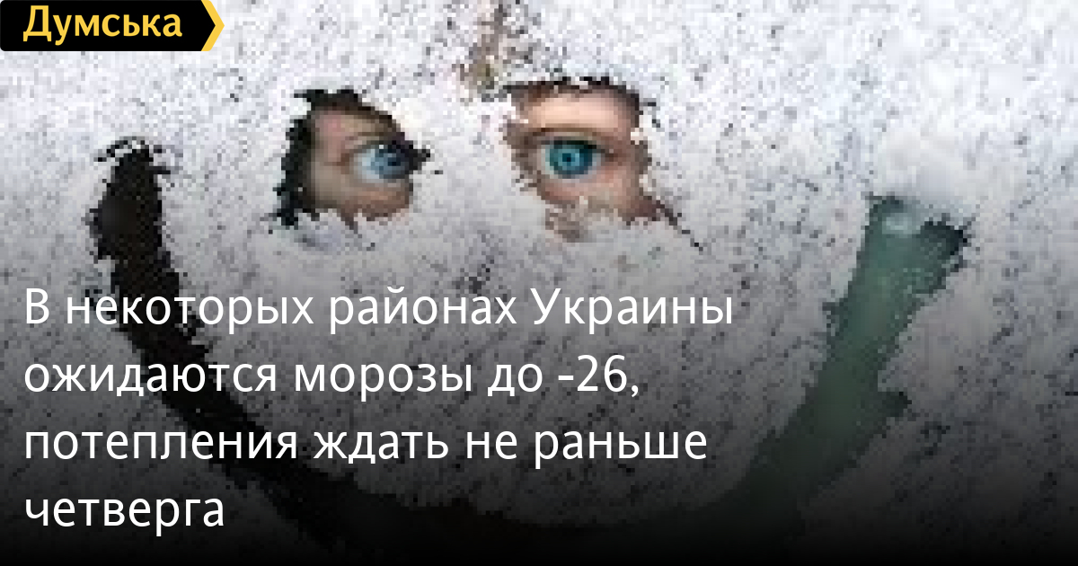 В некоторых районах Украины ожидаются морозы до -26, потепления ждать не раньше четвергаВ ближайшие дни в Украине ожидается похолодание — ночью температура воздуха на левобережной части страны опустится до -26. Об этом сообщили в «Укргидрометцентре». «В ближайшие двое суток ожидается холодная погода с температурой ночью 15-22 °, на севере Левобережья до 26 ° мороза, днем 6-13 ° мороза; на Закарпатье, Прикарпатье и в южной части страны ночью 7-14 °, днем 0-8 ° мороза», — отмечают синоптики. Лишь с 18 февраля в Украине ожидается некоторое ослабление морозов. В большинстве областей будет небольшой снег, в Карпатском регионе умеренный снег. На дорогах страны гололедица. СМЕРТЬ РОССИЙСКИМ ОККУПАНТАМ! Заметили ошибку? Выделяйте слова с ошибкой и нажимайте control-enter |