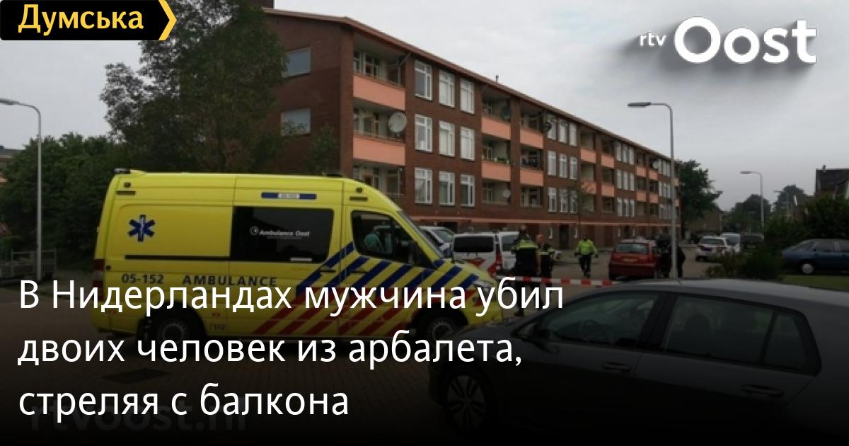 Двое человек убиты и как минимум один ранен в результате стрельбы из арбалета, которую устроил неизвестный в городе Алмело в Нидерландах. Как сообщает De Telegraaf, полиция уже задержала подозреваемого. По словам очевидцев, по прибытии на место происшествия полиции, на балконе стоял мужчина с голым торсом и арбалетом в руках. Он попытался выстрелить в полицейских и был ранен. Личность задержанного не раскрывают.