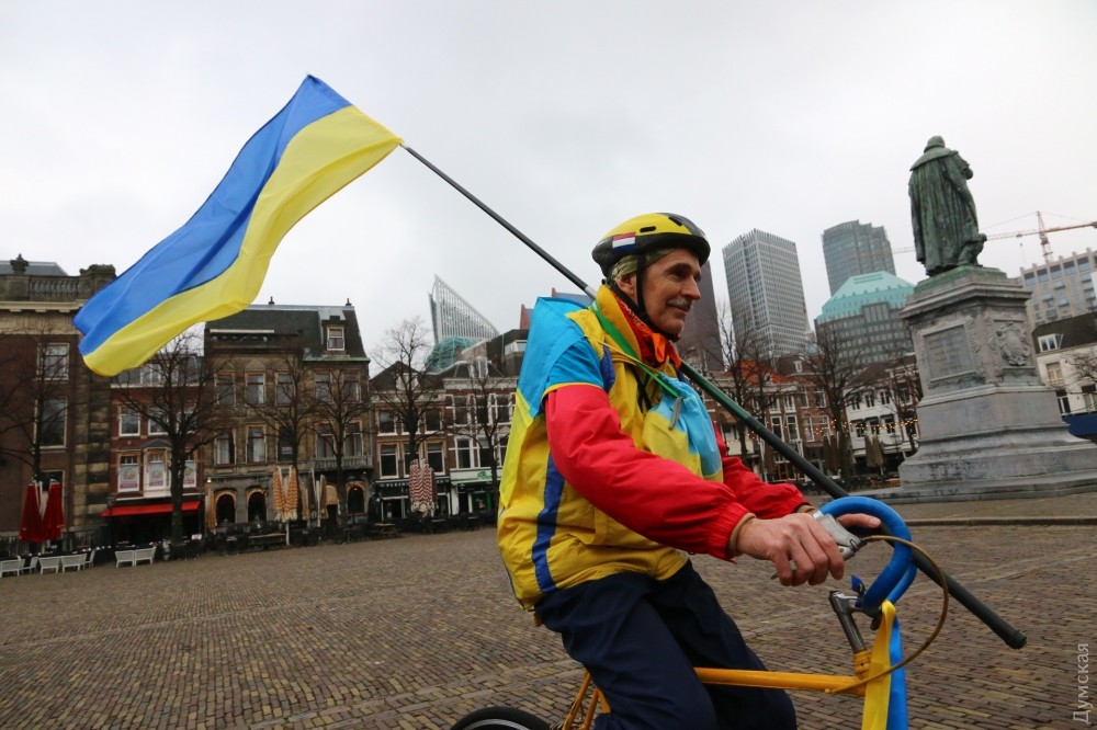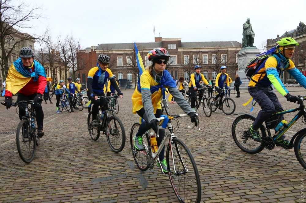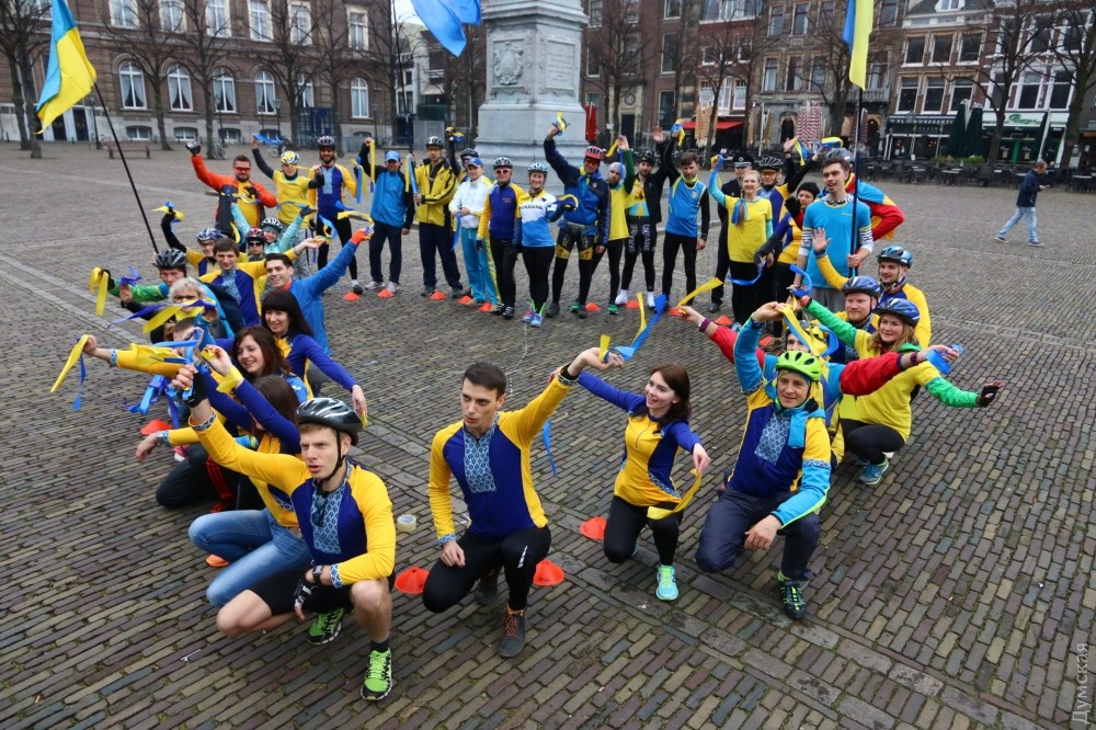Сегодня в 10 часов утра велопробег и ультрамарафон «Say »YES!» Европе», в котором принимают участие и одесситы, стартовал с площади Плейн в Гааге. Участники преодолели 65 км до Амстердама, где на площади Рембрандта провели флешмоб «Сердце Украины». В Амстердаме велодипломаты также будут общаться с голландцами, встретятся с европейскими и украинскими политиками. «Мы приехали с велодипломатической миссией в Нидерланды, потому что через три дня тут состоится референдум, который очень важен для нашего будущего. Мы приехали сюда говорить с голландцами на одном языке – спорта, демократии, свободы. Нам важно продемонстрировать, что украинцы – это такие же люди, как и они, что у нас общие ценности», — сказал участник велопробега, основатель гражданской инициативы ProUkraine, народный депутат Алексей Гончаренко. Он также отметил, что Нидерланды могут послужить примером для Украины в плане развития велоинфраструктуры и голландский опыт поможет нашей стране приблизиться к европейским стандартам и популяризировать здоровый образ жизни в целом. Спортивно-патриотическое мероприятие, организованное гражданской инициативой ProUkraine и благотворительной организацией Sport for Peace, приурочено к референдуму о Договоре об ассоциации Украина – ЕС, который состоится 6 апреля в Нидерландах. СМЕРТЬ РОСІЙСЬКИМ ОКУПАНТАМ! Помітили помилку? Виділяйте слова з помилкою та натискайте control-enter