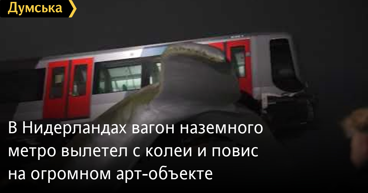 В Нидерландах вагон наземного метро вылетел с колеи и повис на огромном арт-объектеУдивительный инцидент произошел в ночь на 2 ноября в пригороде Роттердама. Как сообщают местные СМИ, на конечной станции De Akkers поезд метро вылетел из колеи, пробил ограждение и повис на скульптуре «Хвосты китов». В вагоне находился только машинист. К счастью, никто не пострадал. Что стало причиной аварии, разбирается полиция. СМЕРТЬ РОССИЙСКИМ ОККУПАНТАМ! Заметили ошибку? Выделяйте слова с ошибкой и нажимайте control-enter |