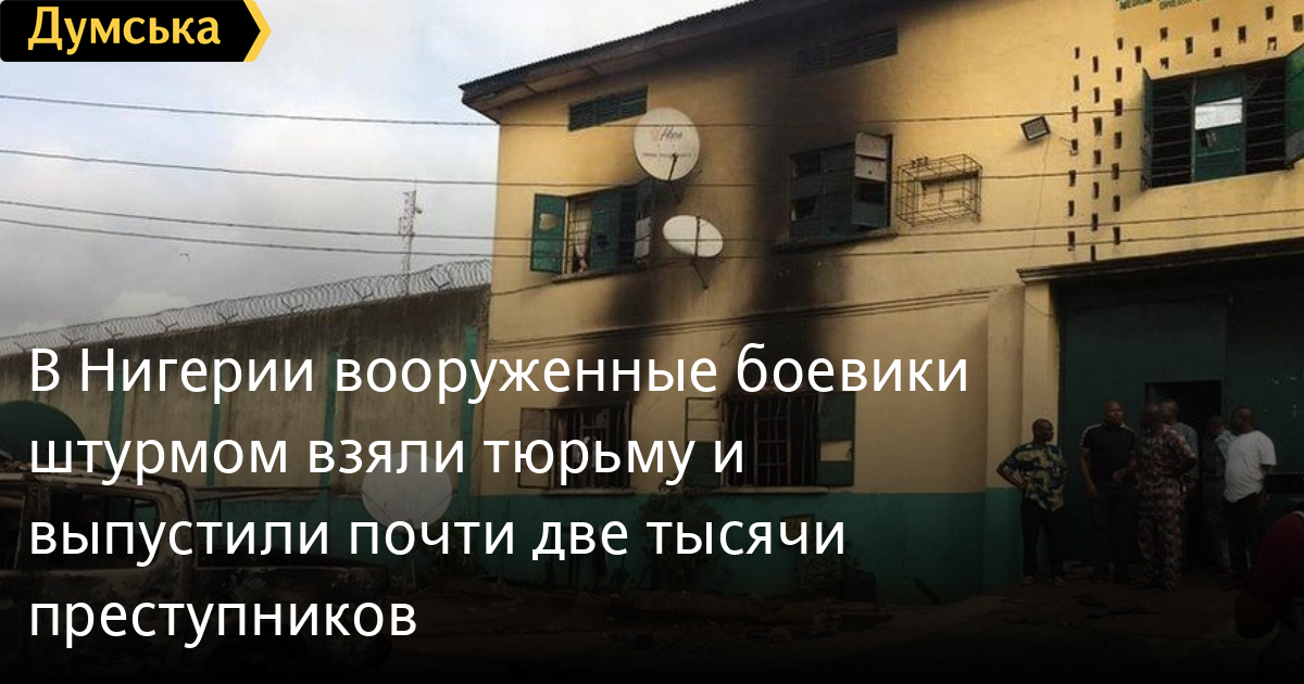 В Нигерии вооруженные боевики штурмом взяли тюрьму и выпустили почти две тысячи преступниковВооруженные боевики в Нигерии напали на тюрьму в штате Имо, в результате сбежало порядка двух тысяч заключенных. Об этом со ссылкой на местную власть сообщило издание «DeutscheWelle». Как стало известно, налетчики приехали ночью на автобусах и пикапах, после чего несколько часов штурмовали здание Центра содержания под стражей «Оверри». У них были пулеметы, винтовка и реактивные гранатометы, а также самодельная взрывчатка. Боевики обстреляли охрану, а потом взорвали административный блок учреждения. Пока продолжался захват, 1 844 заключенных смогли убежать. По данным ВВС, 35 арестованных не захотели покидать тюрьму, а шестеро передумали и вскоре вернулись. Той же ночью в Нигерии было совершено вооруженное нападение на офисы полиции и военных. Также боевики пытались захватить склад, где хранится оружие, но тюремная охрана им помешала. По одной из версий полицейских, за организацией захвата могла стоять так называемая «Восточная сеть безопасности», военизированная структура, связанная с группой сепаратистов «Коренные народы Биафры». В свою очередь, ее руководство отрицает свою причастность к штурму. На инцидент отреагировал президент Нигерии Мухаммаду Бухари. Он назвал происшедшее «террористическим актом», который совершили анархисты, и призвал службу безопасности поймать напавших и разыскать беглых преступников. СМЕРТЬ РОССИЙСКИМ ОККУПАНТАМ! Заметили ошибку? Выделяйте слова с ошибкой и нажимайте control-enter Новости по этой теме: 12 января 2022: Харьковские станции метро ожидает масштабная проверка: в вестибюле подземки на площади Конституции рухнул потолок (фото) 8 января 2022: В Одессе из офиса фирмы выкрали сейф с внушительной суммой денег, золотом и пистолетом 27 декабря 2021: В лесополосе под Киевом нашли тело главврача из Ровенской области: по подозрению в убийстве задержаны таксист с приятелем 23 декабря 2021: В Киеве задержали подозреваемых мошенников, которые обманывали на свиданиях мужчин ради денег |