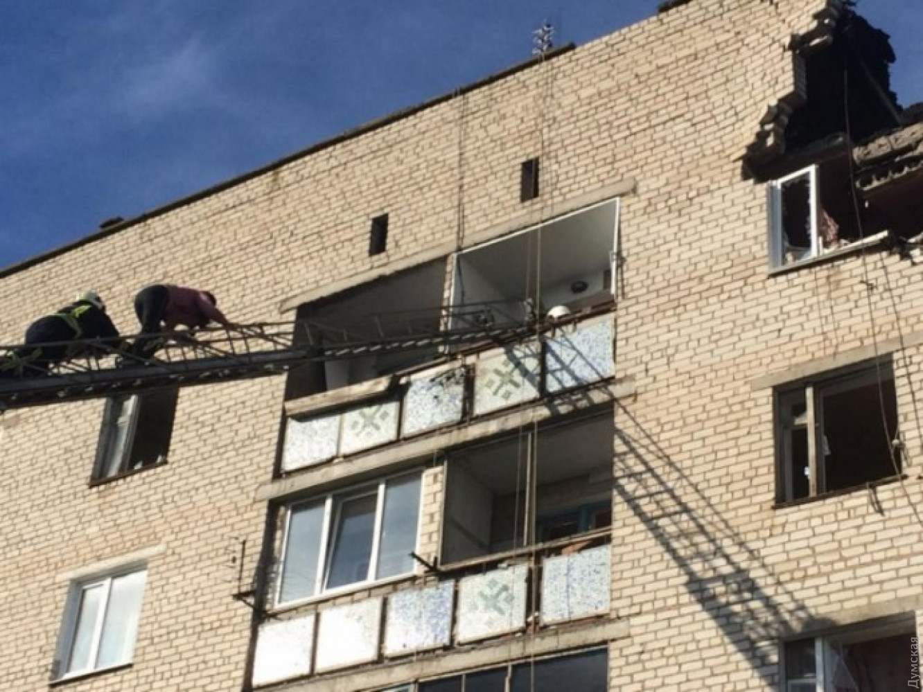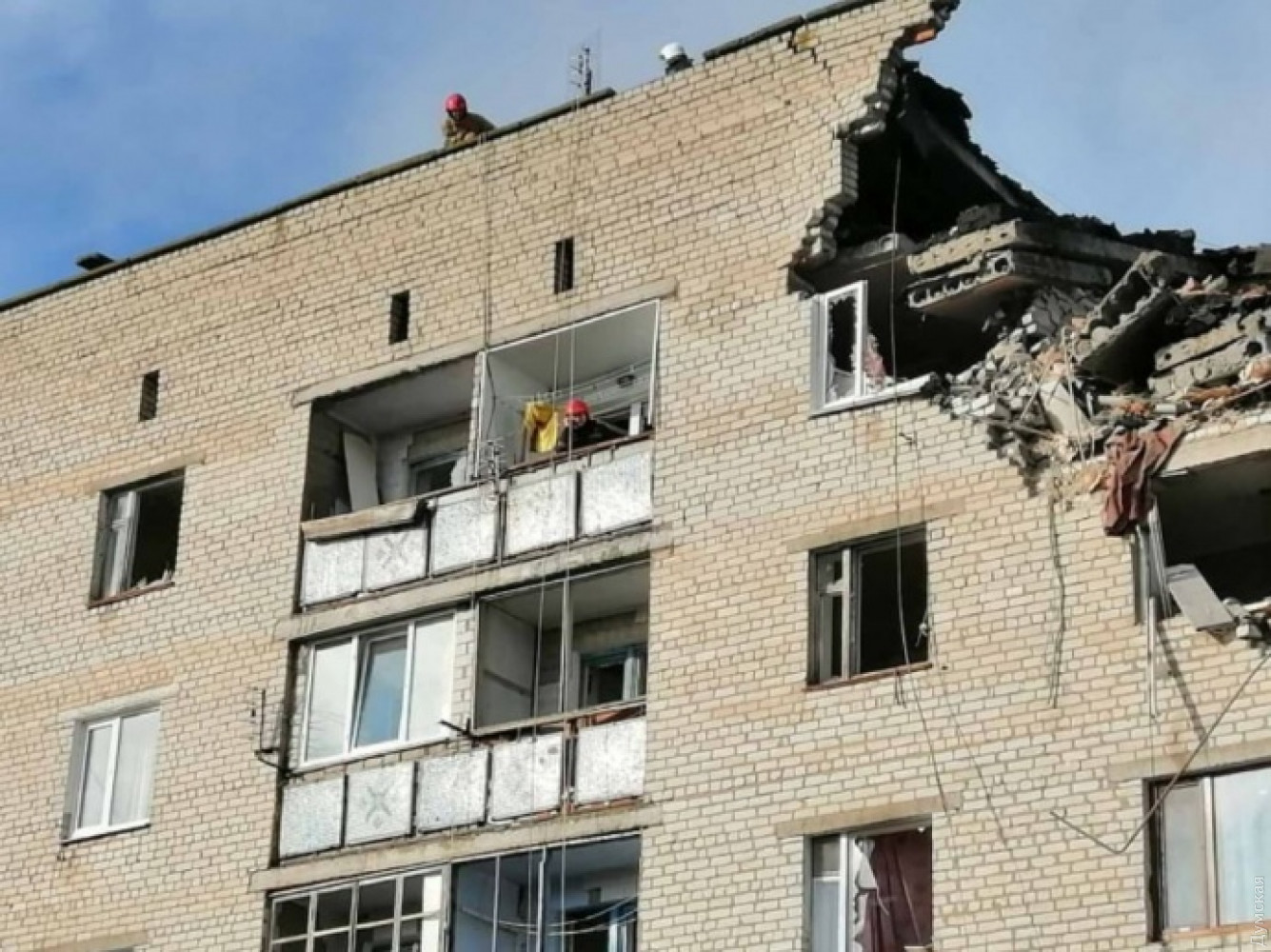 В Николаевской области в жилом доме взорвался бытовой газ: разрушено два этажа (обновляется, фото, видео)Взрыв бытового газа произошел в пятиэтажном жилом доме в городе Новая Одесса Николаевской области. Разрушены два верхних этажа здания, сообщили в ГСЧС. Предварительно взрыв прогремел на пятом этаже. Информация о жертвах и пострадавших уточняется. Известно также, что на пятом этаже заблокированы 2 человека. На месте работают от ГСЧС 75 человек и 14 единиц техники. Кроме того, на место происшествия направили кинологическую группу (три человека, две собаки и одна единица техники). ОБНОВЛЕНО В 13:44. В настоящее время известно о трех пострадавших. У одного из них перелом руки и повреждение позвоночника, двое находятся в шоковом состоянии. ОБНОВЛЕНО В 16:12. Спасатели обнаружили на четвертом этаже тело женщины. ОБНОВЛЕНО В 17:08. В ГСЧС уточнили, что женщина была без сознания, она жива. В облгосадминистрации сообщили, что скончался пожилой мужчина, которого эвакуировали из соседнего подъезда. Он умер от сердечного приступа. СМЕРТЬ РОСІЙСЬКИМ ОКУПАНТАМ! Помітили помилку? Виділяйте слова з помилкою та натискайте control-enter |