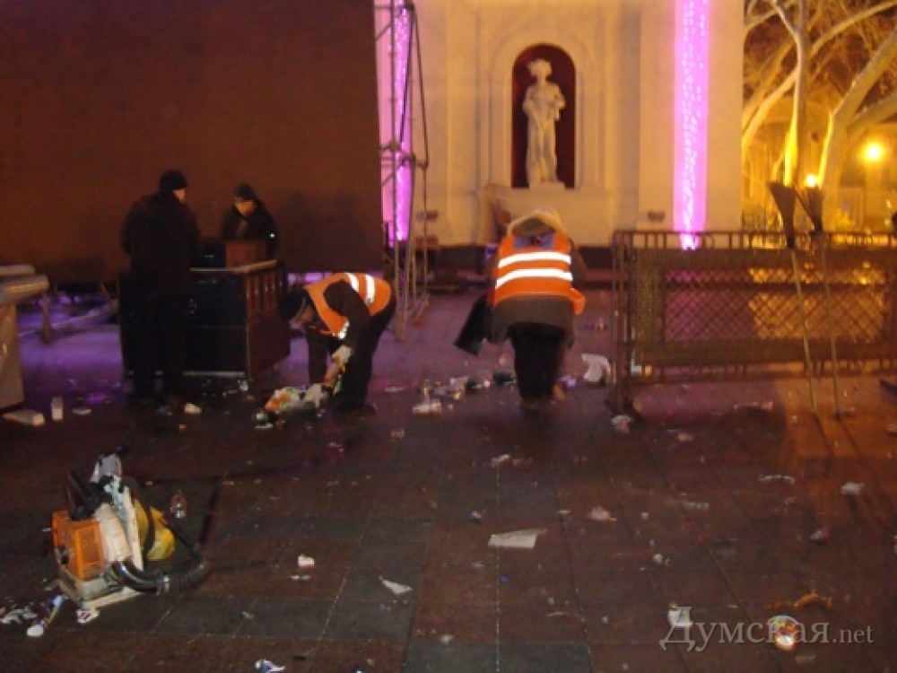 В новогоднюю ночь одесситы выбросили на Приморском бульваре 30 тонн мусора
