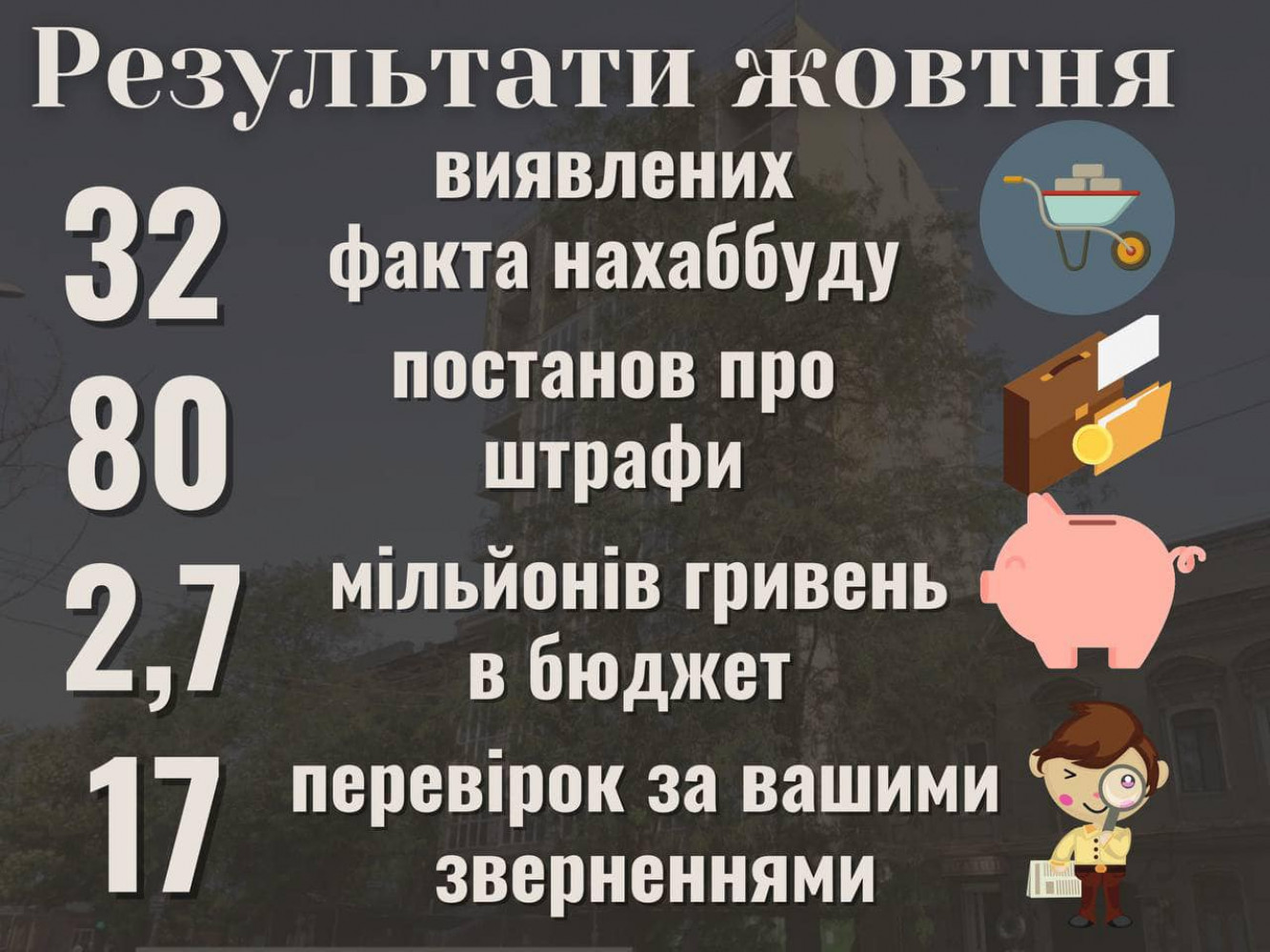 ЖК на месте двухэтажного особняка и перестройка памятника архитектуры: в ноябре одесский ГАСК провел 69 проверок69 проверок и 2,7 млн грн штрафов — таковы итоги работы управления государственного архитектурно-строительного контроля Одесского горсовета за ноябрь. «В ноябре было немало строительных скандалов, из-за этого на десять проверок больше, чем в октябре. Мы как всегда реагируем на обращения граждан и выявляем новые факты нахалстроя», — отметил руководитель одесского ГАСКа Александр Авдеев. Всего в течение ноября инспекторы управления планово и внепланово проверили 69 объектов, выявили 32 случая нахалстроя по всему городу. «Среди них выявлены факты самовольного строительства, внесения недостоверных данных, а также мансарды в центре города, пристройки, реконструкции без документов. Наши основные итоги работы: 80 постановлений о штрафах на сумму 2 млн 663 тыс 991 грн за месяц. Юридические лица — 2 млн 210 тыс 91 грн, физические лица — 453 тыс 900 грн», — отметил Александр Авдеев. В частности, инспекторы ГАСКа провели проверку строительных работ на Итальянском бульваре, 7/9, которые проводит ЧП «ЛАІКА СЕКЮРІТІ», владеющее объектом культурного наследия местного значения. Ранее ГАСК уже дважды штрафовал эту компанию за то, что после получения двух деклараций на капитальный ремонт с реконструкцией кровли и обустройством мансардного этажа фирма выполняла работы с нарушениями и без необходимых документов. Первая проверка была проведена еще в мае, когда компания решила повысить ограду до 3,8 м (нарушение норм ДБН). Сумма штрафа — 98 тыс 505 грн. Этот штраф нарушитель сейчас обжалует. Вторая проверка прошла уже в ноябре. Нарушение — обустройство фундаментов, железобетонных монолитных колонн и конструкции перекрытия без права на выполнение строительных работ. Штраф — 880 тысяч 230 грн. «19 ноября вместе с представителями департамента архитектуры и градостроительства, департамента земельных ресурсов, департамента по благоустройству города и Приморской райадминистрации проведено комиссионное обследование. Мы установили, что работы не прекращены и в данный момент продолжаются на уровне второго этажа. Мы направили обращение в Одесскую областную прокуратуру и в Приморскую окружную прокуратуру Одессы», — отметил Авдеев. Еще одно нарушение ГАСК выявил по адресу Сурикова, 17-А. В 2020 году объект являл собой незавершенное двухэтажное строение с мансардой. «Тут не были установлены оконные и дверные блоки, отсутствовала внутренняя и внешняя отделка. В 2021 году начались строительные работы по реконструкции индивидуального жилого дома в многоквартирный без документов, дающих право на выполнение этих работ», — отметил чиновник. Инспекторы ГАСК трижды выезжали на место и штрафовали владельца за недопуск на объект. Сейчас владелец зарегистрировал право собственности на участок и на домовладение, которое по сути является недостроенным объектом. «Из-за права собственности на землю мы значительно ограничены в возможностях для проверки. Отмечу, что согласно информации ряда интернет-ресурсов, по этому адресу открыта продажа квартир ЖК «Craft House», которую можно отнести к опасным инвестициям», — отметил Авдеев. СМЕРТЬ РОСІЙСЬКИМ ОКУПАНТАМ! Помітили помилку? Виділяйте слова з помилкою та натискайте control-enter |