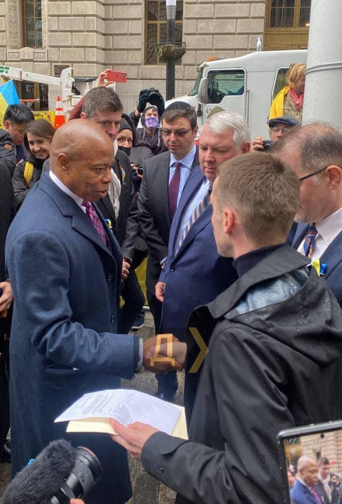 «У березні мене запросили на підняття українського прапора на Уолл-стріт, – розповів він нам. А перед цим я подумав: було б добре піднімати прапор на якійсь українській вулиці. Тоді прийшла ідея написати листа меру: звернутися до нього з проханням, щоби щось у Нью-Йорку носило ім'я України».