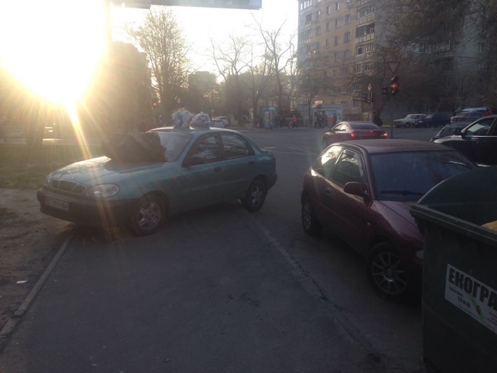 Это выглядит как постановка: зачем он так припарковался, если было место чтобы встать нормально? Кому охота тащить мусор на перекресток, специально для него готовили? Впрочем, идиотов хватает