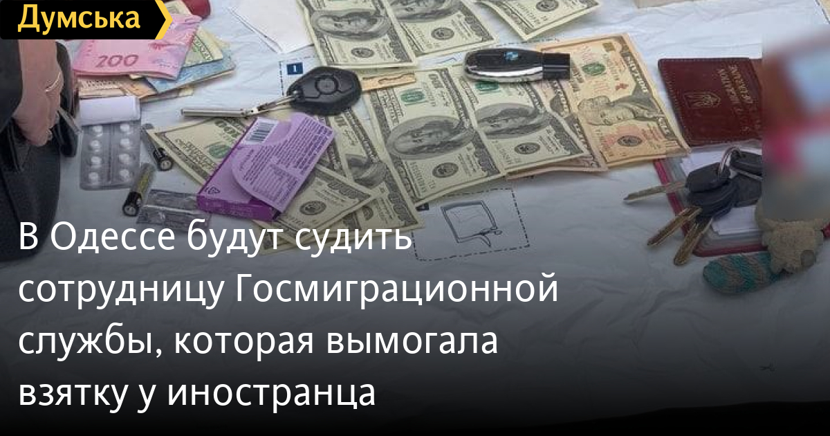 В Одессе будут судить сотрудницу Госмиграционной службы, которая вымогала взятку у иностранцаСледствие передало в суд обвинительный акт в отношении сотрудницы Главного управления Государственной миграционной службы в Одесской области. Как сообщили в прокуратуре, фигурантку подозревают в получении 1200 долларов взятки. Напомним, чиновницу задержали в начале февраля при получении первого транша неправомерной выгоды в размере 700 долларов. По данным следствия, подсудимая требовала деньги у гражданина Грузии за своевременное оформление и выдачу удостоверения на постоянное проживание в Украине и подтверждения гражданства Украины его дочери. Фигурантке инкриминируют совершение преступления, предусмотренного ч.3 ст.368 УК Украины (получение неправомерной выгоды должностным лицом). СМЕРТЬ РОССИЙСКИМ ОККУПАНТАМ! Заметили ошибку? Выделяйте слова с ошибкой и нажимайте control-enter |