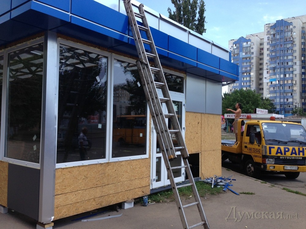 На Днепропетровской дороге, 111 демонтировали будку, площадь которой достигала 120 метров. Как передает корреспондент «Думской», руководил сносом установленного 5 июля объекта новоназначенный начальник горуправления развития потребительского рынка и защиты прав потребителей Олесь Янчук. Вместо комментария бывший злейший враг, а ныне подчиненный мэра Костусева, отшутился, мол, в Одессе начинается «Народный демонтаж». По сути Янчук сообщил, что у МАФа есть все согласования и документы на аренду твердого покрытия, однако его размеры превышают разрешенные законом в три раза. Кроме того, объект размещен на газоне, а никак не на твердом покрытии. Тем временем источники в муниципалитете сообщают, что хозяин павильона уже заплатил 40 тысяч долларов взятки за установку, а потом пытался дать еще 10 тысяч, чтобы все осталось как есть. СМЕРТЬ РОСІЙСЬКИМ ОКУПАНТАМ! Помітили помилку? Виділяйте слова з помилкою та натискайте control-enter |