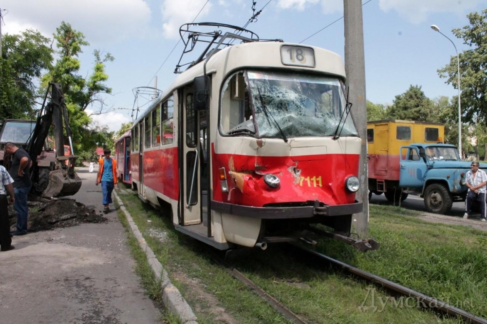 Сегодня днем на 9 станции Большого Фонтана трамвай, следовавший по маршруту №18, врезался в стоящий на рельсах грузовик ЗИЛ. Как сообщают очевидцы на «Одесском форуме», грузовик, стоящий на рельсах, загружали землей экскаваторы, которые проводили здесь работы. Трамвай двигался в сторону 10 станции Большого Фонтана. По словам рабочих, которые находились поблизости и стали свидетелями происшествия, водитель трамвая даже не пытался затормозить, чтобы избежать столкновения. Напомним, 24 июня в Одессе на проспекте Маршала Жукова трамвай столкнулся с грузовиком. В результате этого ДТП пострадали 4 человека, а 84-летняя женщина скончалась в больнице. Фото «Одесского форума» СМЕРТЬ РОССИЙСКИМ ОККУПАНТАМ! Заметили ошибку? Выделяйте слова с ошибкой и нажимайте control-enter |
