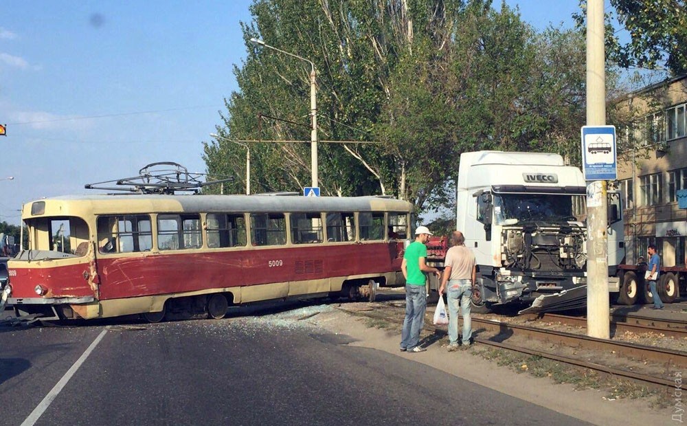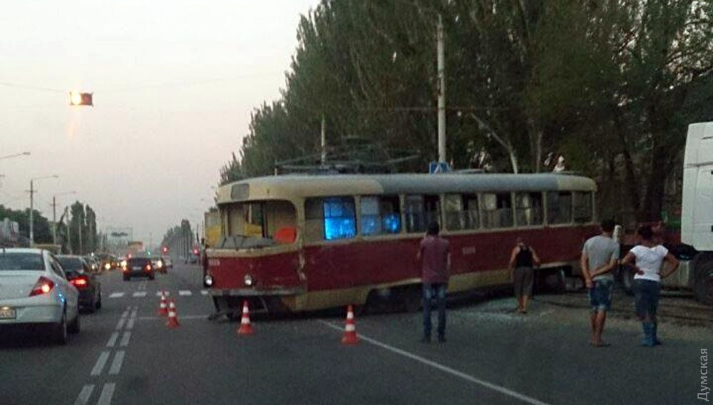 Вечером 9 сентября на Николаевской дороге фура столкнулась с трамваем. В результате ДТП трамвай сошел с рельсов и перекрыл дорогу в сторону поселка Котовского. Как сообщили «Думской» в коммунальном предприятии «Одесгорэлектротранс», причиной аварии стало то, что водитель грузовика, выезжая с территории завода, не уступил дорогу трамваю. Пострадавших нет.