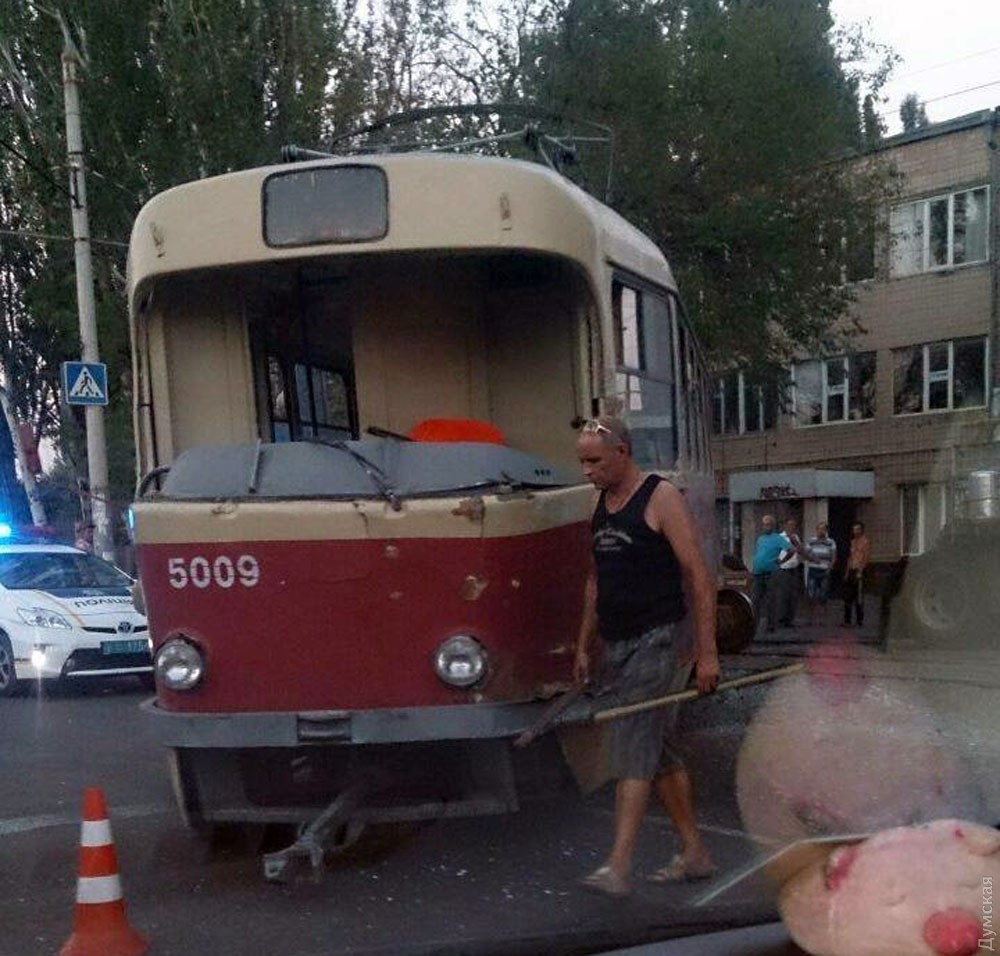 Причем удар был по кассетной, а вот из-за огромной скорости трамвая он сошел с рельс