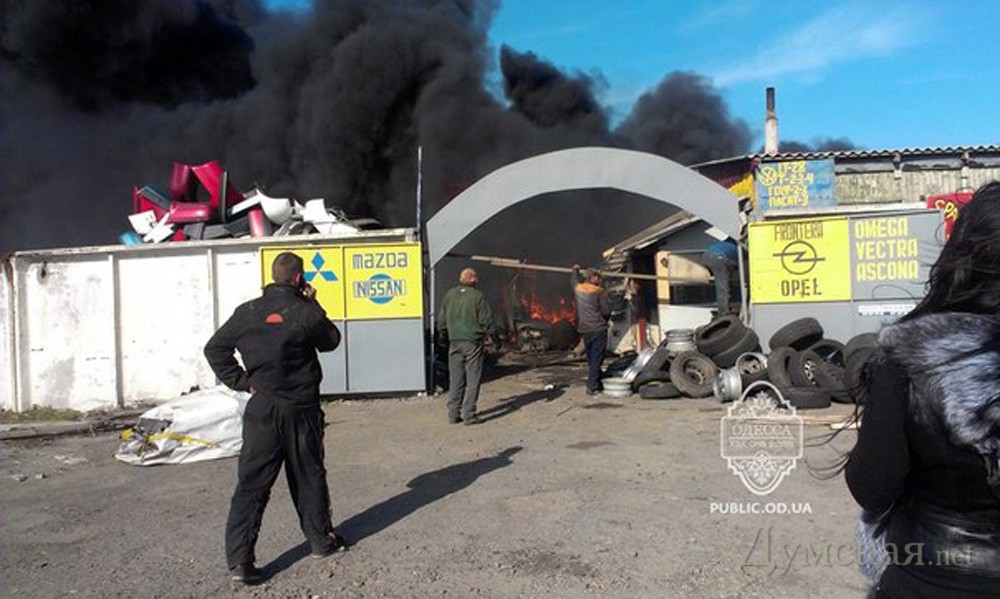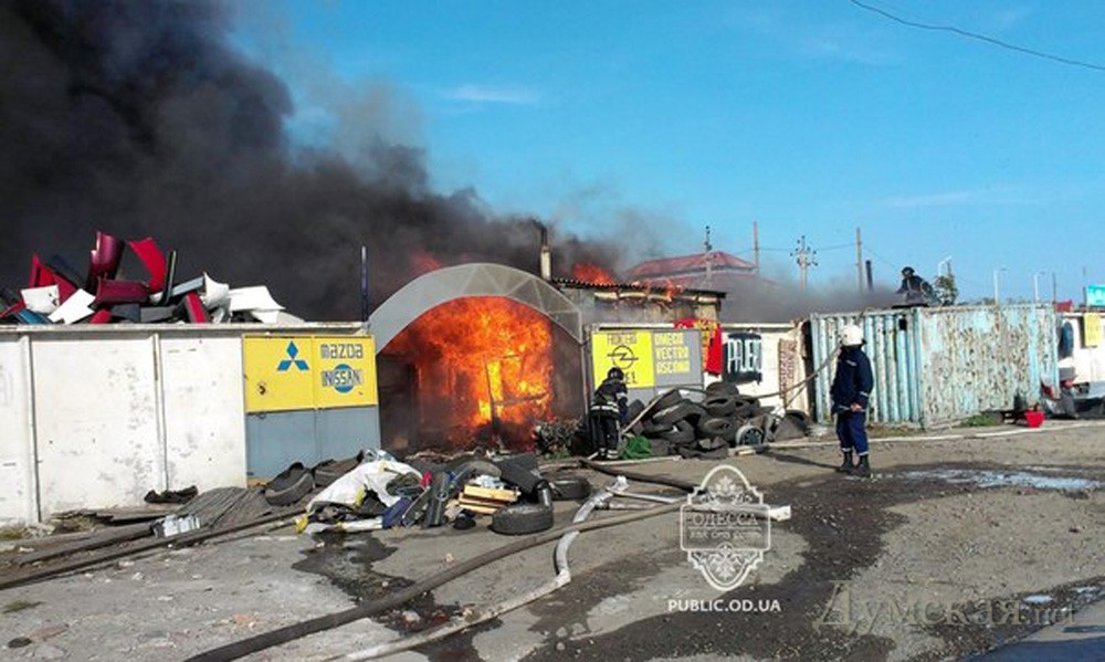 Очевидцы происшествия на форумах и в соцсетях сообщают, что пожар возник около 14 часов в одном из павильонов «разборки», а затем охватил другие сооружения. Также свидетели утверждают, что пожарным приходилось подвозить воду из водоема, который находился на расстоянии одного километра от места происшествия, поскольку поблизости не было гидрантов. В результате пожара никто не пострадал. Причины возгорания выясняются. Фото: «Одесса как она есть»