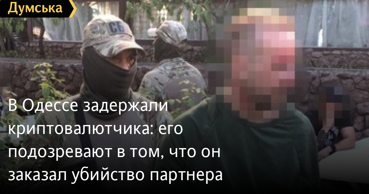 В Одессе задержали криптовалютчика: его подозревают в том, что он заказал убийство партнераПравоохранители инсценировали проникновение в жилье, похищение и убийство предпринимателя, чтобы получить доказательства против человека, который его «заказал». Операцию провела Служба безопасности Украины вместе с Главным управлением Нацполиции в Одесской области. В Одессе оперативники задержали 37-летнего жителя Киева — одного из основателей криптовалютного фонда. Следствие утверждает, что мужчина заказал убийство своего партнера, который узнал о его планах присвоить деньги вкладчиков и угрожал раскрыть этот замысел. Жизнь жертвы коммерсант оценил в 5 тысяч долларов. К заказчику направили подставного киллера, который взялся выполнить грязную работу. 27 августа на улице Голосеевской, в столице, потерпевший был «похищен». Очевидцы сняли этот момент на видео. Через несколько дней «убийца» предоставил заказчику фальшивые фотодоказательства устранения жертвы и потребовал второй части платы. Подозреваемого задержали в момент передачи денег. Сейчас ему инкриминируют преступление, квалифицированное по статье 115 «покушение на умышленное убийство, совершенное по заказу». СМЕРТЬ РОССИЙСКИМ ОККУПАНТАМ! Заметили ошибку? Выделяйте слова с ошибкой и нажимайте control-enter Новости по этой теме: 29 июля 2025: В Усатово Одесской области произошла перестрелка: полиция работает на месте (видео, обновлено) 28 июля 2025: Пьяный на «Ягуаре» или гипертоник? Уволенный топ-чиновник одесской полиции хочет вернуться на службу 19 июня 2025: Девочку, которую искали сотни одесситов, нашли убитой: полиция работает с мужчиной, вероятно, причастным к гибели 27 мая 2025: Увели гектар у университета: на Одесчине осудили земельных аферистов, но без посадки и Хвоста |