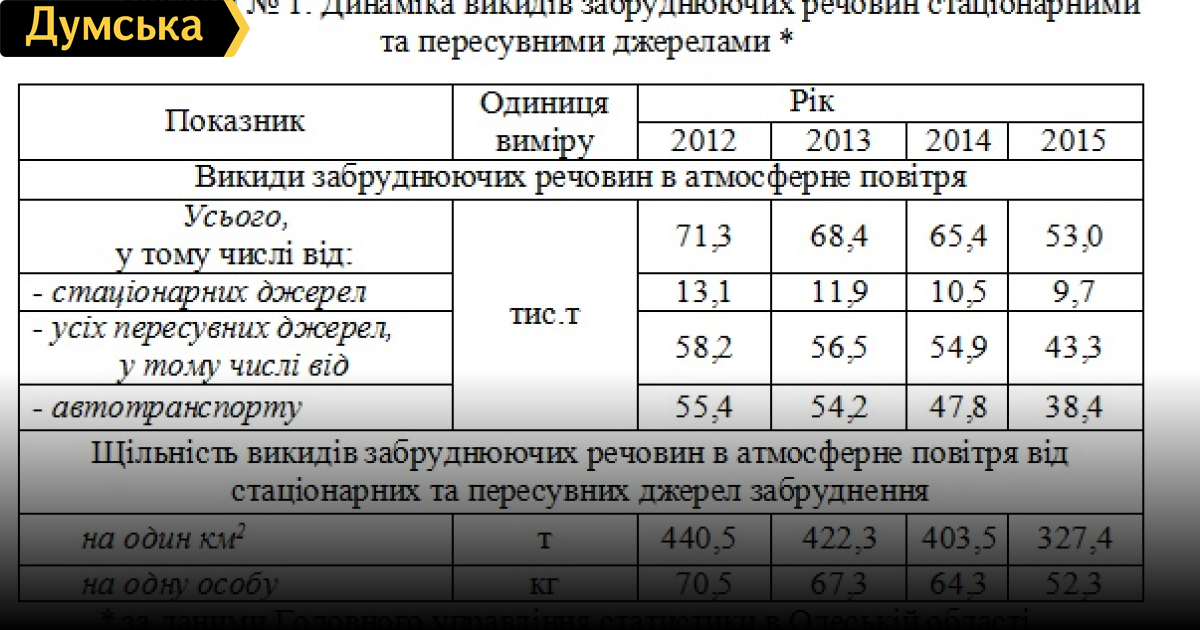 Начиная с 2012 года в Одессе наблюдается постепенное уменьшение объемов выбросов загрязняющих веществ в атмосферу.