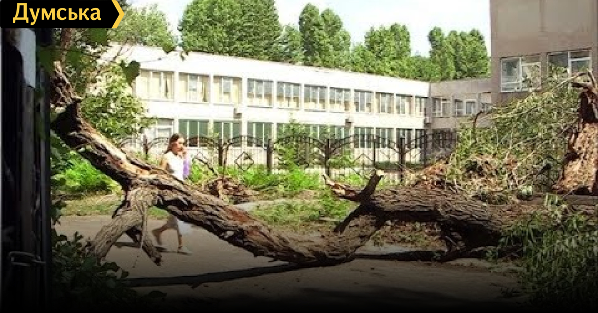 На улице Довженка, возле одного из домов, всё ещё не убрали поваленное дерево. Из-за сильного ливня, оно упало просто посреди улицы и перекрыло собой проход.