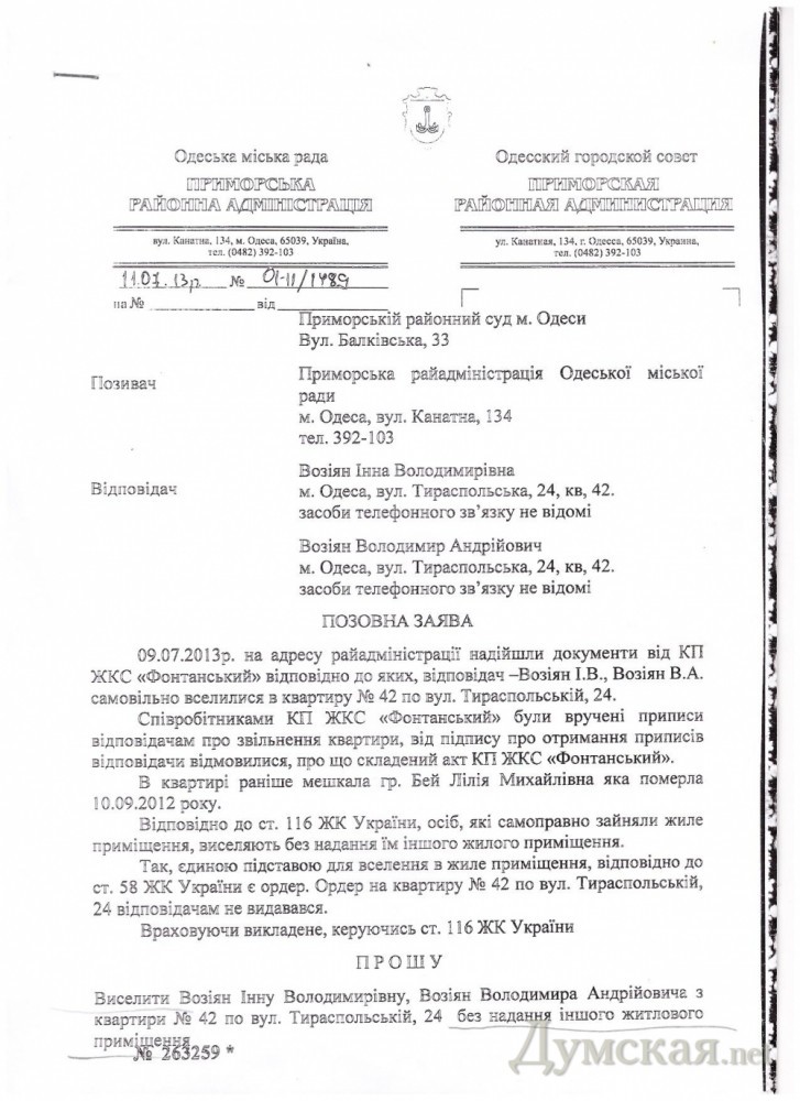 44-летнюю одесскую дворничиху Инну Возиян пытаются выбросить на улицу. Жилье, которое она получила ранее в качестве служебного и отремонтировала за свой счет, оформили на сотрудника прокуратуры. Женщина рассказала «Думской», что работает в жэке уже 12 лет. Последние десять лет Инна с семьей жила в малопригодных для человека условиях – сырых подвалах с текущей канализацией и крысами. Все эти годы семья стояла на квартирной очереди и надеялась рано или поздно получить заветные квадратные метры. И вот в 2012 году это случилось – Инне Возиян выделили однокомнатную квартиру в аварийном доме №24 по улице Тираспольской (том самом, где снимал жилье Адам Осмаев и в котором в январе 2012 года произошел взрыв). Пока длилась волокита с оформлением, Инна с семьей взялась восстанавливать квартиру. За годы ожидания женщина смогла накопить денег на ремонт — около 15 тысяч гривен. Когда работа была завершена, одесский филиал «НИИпроектреконструкция» выдал женщине разрешение на эксплуатацию квартиры, которую после взрыва признали аварийной. «После того как я получила техзаключение я передала пакет документов на выдачу мне служебного ордера. Но в этот же день ко мне явилась замдиректора ЖКСа Ольга Струтинская, обследовала жилье и вызвала меня к себе. Уже в кабинете она потребовала, чтобы я срочно выселялась, так как квартиру уже передали сотруднику прокуратуры», — возмущается Инна. Пострадавшая уверена – руководство ЖКСа либо совершило незаконную сделку по продаже квартиры, либо хочет ее квартирой дать взятку прокуратуре. Сейчас Приморская администрация, в лице заместителя председателя Василия Снитко, подала на дворника в суд с требованием выселить ее без предоставления любого другого жилья. Доведенная до отчаяния Инна Возиян написала письма Президенту Украины, Генпрокурору Украины, прокурору Одесской области и городскому голове Алексею Костусеву с просьбой помочь вернуть жилье. В райадминистрации комментировать ситуацию отказались, потребовав направить официальный информационный запрос, что мы в самое ближайшее время и сделаем. СМЕРТЬ РОСІЙСЬКИМ ОКУПАНТАМ! Помітили помилку? Виділяйте слова з помилкою та натискайте control-enter |