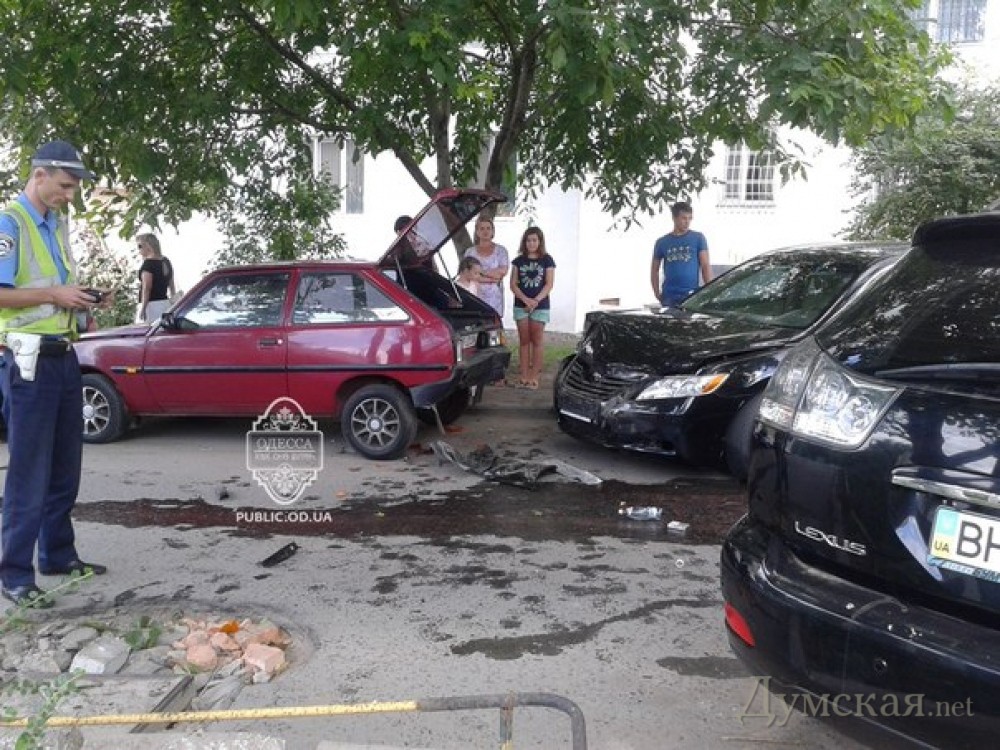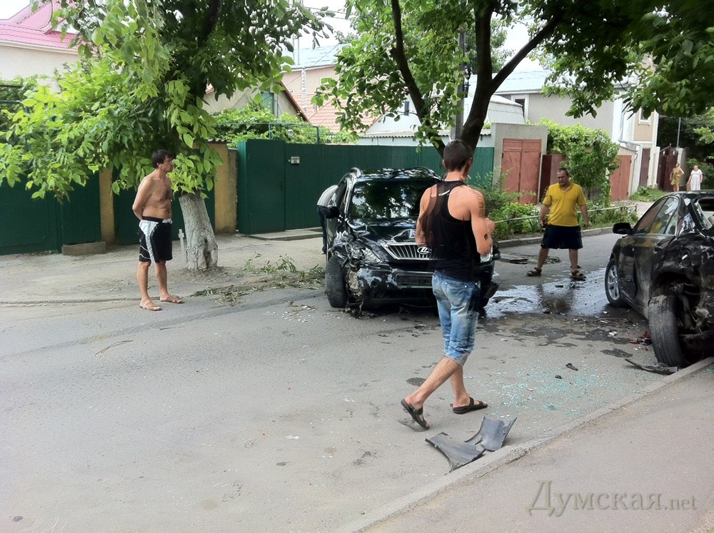 Авария с участием как минимум пяти автомобилей произошла днем 24 июля на улице Александра Невского. Как сообщили «Думской» очевидцы, водитель автомобиля Lexus RX350 ехал по Люстдорфской дороге и в районе перекрестка с улицей Тополева задел внедорожник Volkswagen Touareg. Пытаясь скрыться с места ДТП, он направился на улицу Александра Невского, на большой скорости заехал во двор дома №43/3, врезался в припаркованную «Тойоту» и перевернулся. Также повреждены другие стоявшие во дворе машины. Среди них – «Таврия» и Mitsubishi Lancer. По словам свидетелей, на месте происшествия была машина скорой помощи, хотя серьезных травм никто не получил. Добавлено: по словам владельца «Тойоты», в салоне автомобиля «Лексус», кроме водителя, находились его беременная жена и 6-летняя дочь. Все они отказались от госпитализации. После аварии на место происшествия прибыли знакомые виновника на Daewoo, куда посадили ребенка и беременную женщину. Ее муж перенес туда свои вещи из «Лексуса». Свидетели не дали ему скрыться до приезда правоохранителей, которые позже забрали мужчину для проведения экспертизы. «Алкоголем от него не пахнет, но двигается он странно», — отметили очевидцы. фото: паблика «Одесса как она есть» СМЕРТЬ РОСІЙСЬКИМ ОКУПАНТАМ! Помітили помилку? Виділяйте слова з помилкою та натискайте control-enter Новини по цій темі: 30 серпня 2025: Машина вилетіла в кювет: мер Рені потрапив в аварію, його мати загинула, а маленький син у лікарні (фото) 18 серпня 2025: Троє загинули, один у лікарні: на трасі Одеса-Рені водій Mercedes не пропустив фуру (фото) 28 липня 2025: П'яний на "Ягуарі" або гіпертонік? Звільнений топ-посадовець одеської поліції хоче повернутися на службу 2 квітня 2025: В Одесі водій BMW спровокував аварію, в якій постраждали п`ятеро людей, і втік (фото, відео) |