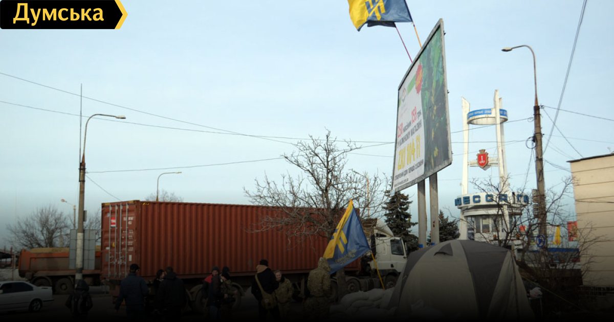 Как передает корреспондент «Думской», сейчас на посту в районе «Двух столбов» дежурят чуть более десяти активистов, включая девушек из «Правого сектора». Участники акции рассказывают, что сегодня на пост приехали люди с оружием, которые представились дальнобойщиками и требовали остановить блокаду.
