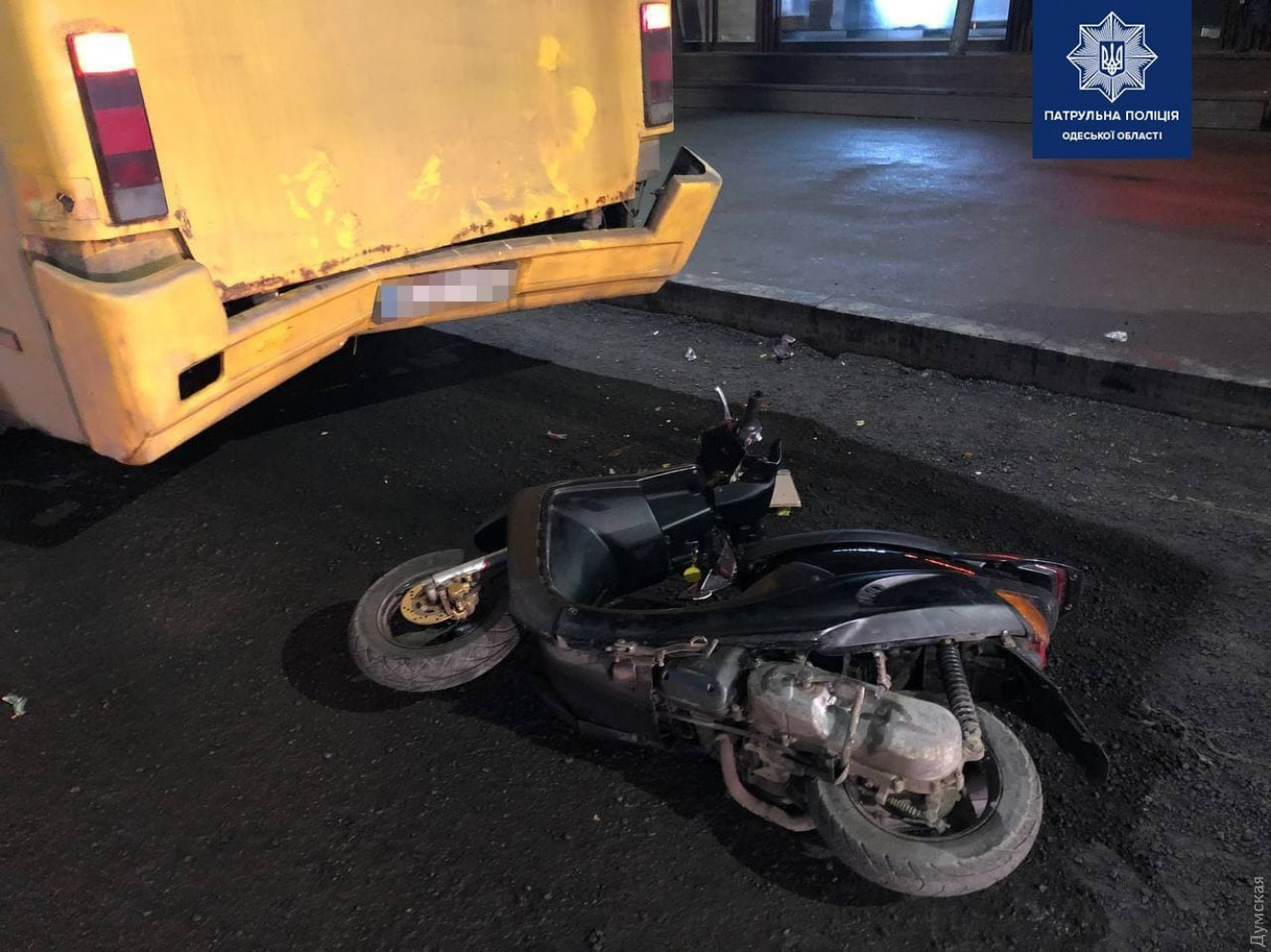 Один человек пострадал в результате ДТП, которое случилось вчера вечером, примерно в 20:00, на улице Святослава Рихтера в Одессе. Как сообщили в патрульной полиции, несовершеннолетний водитель мопеда не выбрал безопасную скорость и дистанцию и столкнулся с маршруткой, которая остановилась возле остановки общественного транспорта. Мопедиста доставили в больницу. СМЕРТЬ РОСІЙСЬКИМ ОКУПАНТАМ! Помітили помилку? Виділяйте слова з помилкою та натискайте control-enter Новини по цій темі: 30 серпня 2025: Машина вилетіла в кювет: мер Рені потрапив в аварію, його мати загинула, а маленький син у лікарні (фото) 18 серпня 2025: Троє загинули, один у лікарні: на трасі Одеса-Рені водій Mercedes не пропустив фуру (фото) 28 липня 2025: П'яний на "Ягуарі" або гіпертонік? Звільнений топ-посадовець одеської поліції хоче повернутися на службу 2 квітня 2025: В Одесі водій BMW спровокував аварію, в якій постраждали п`ятеро людей, і втік (фото, відео) |