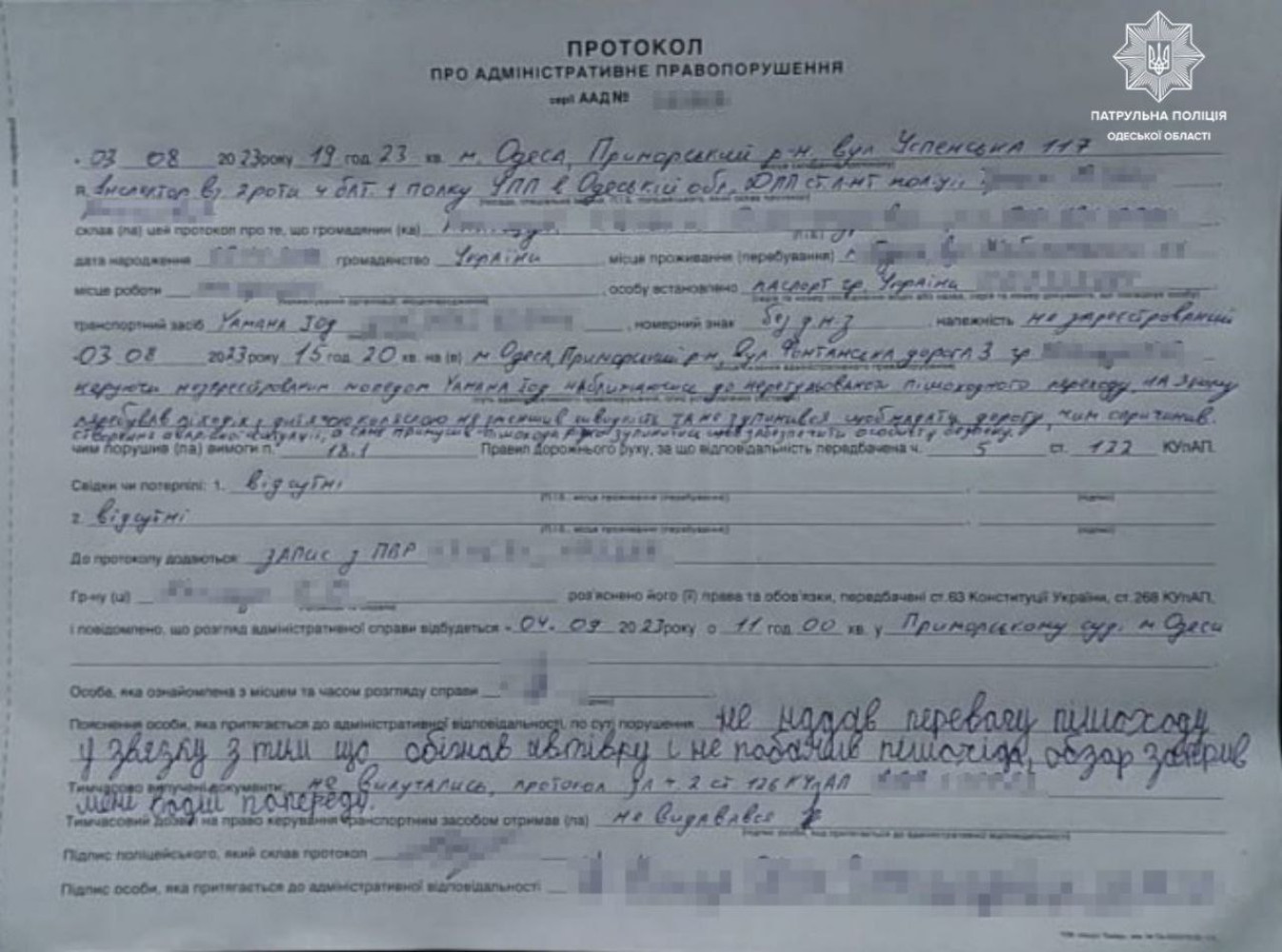 В Одессе мопедист без прав чуть не сбил женщину с коляской на пешеходном переходеВодителя мопеда, который чуть не сбил женщину с детской коляской на Фонтанской дороге, разыскали одесские правоохранители и привлекли к ответственности. Как сообщили в пресс-службе патрульной полиции, инцидент произошел 3 августа, когда женщина пересекала дорогу по пешеходному переходу. Нарушение снял на видео один из водителей и распространил в сети. Увидев его, мотопатрульные решили разыскать лихача и быстро установили его местонахождение. Водителем оказался 16-летний подросток, у которого даже не было прав. Инспекторы составили на него админматериалы по ч. 5 ст. 122 (нарушение правил дорожного движения, повлекшие создание аварийной ситуации) и ч. 2 ст. 126 (управление транспортным средством лицом, не имеющим права управления таким транспортным средством) КУоАП. Заметили ошибку? Выделяйте слова с ошибкой и нажимайте control-enter |