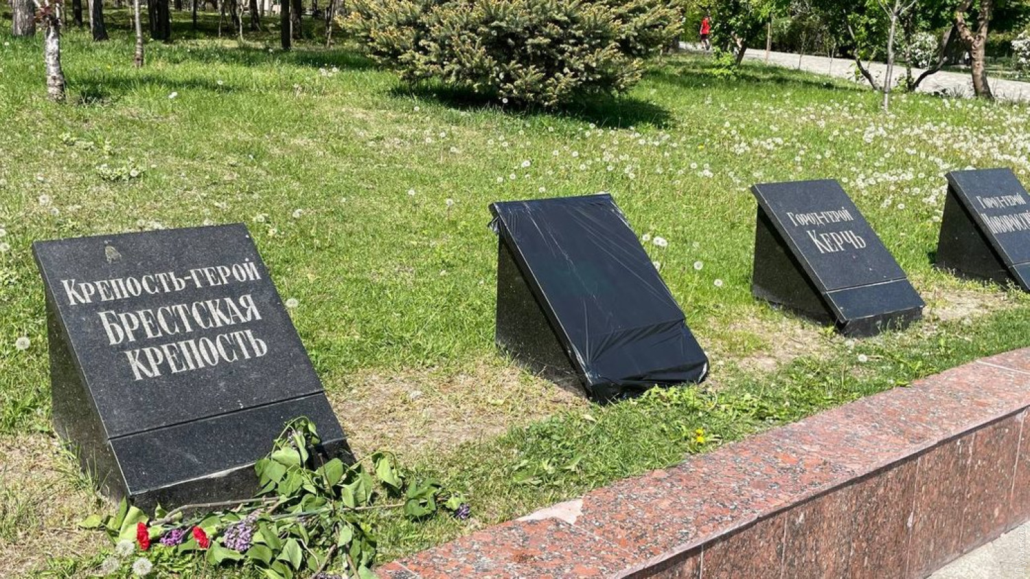 В парке Шевченко у стелы Неизвестному матросу скрыли черной пленкой табличку городу-герою Москве. Об этом сообщает «Суспільне. Одеса». Отметим, другие таблички с российскими и белорусскими городами-героями (Ленинград, Мурманск, Сталинград, Тула, Новороссийск, Смоленск, Минск) пока остаются открытыми. СМЕРТЬ РОСІЙСЬКИМ ОКУПАНТАМ! Помітили помилку? Виділяйте слова з помилкою та натискайте control-enter |