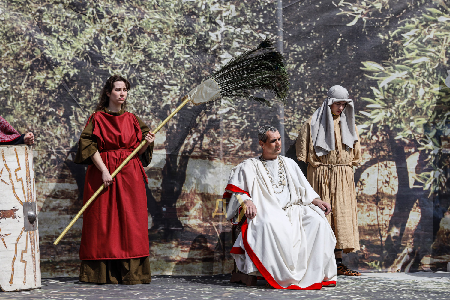 Великодня реконструкція на один день перемістилася зі скверу Гамова на головну вулицю Одеси — Дерибасівську. Парафіяни Одеської народної церкви встановили імпровізовану сцену в районі Міського саду і на пів години занурили одеситів і гостей міста в події двохтисячолітньої давнини. У костюмованій виставі показали сцену суду Понтія Пілата над Ісусом Христом. Непрофесійну гру актори легко компенсували автентичним вбранням і щирістю віри в біблійні події. Захід закінчився колективною молитвою за Україну. СМЕРТЬ РОСІЙСЬКИМ ОКУПАНТАМ! Помітили помилку? Виділяйте слова з помилкою та натискайте control-enter |