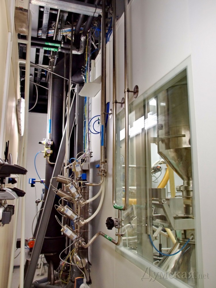 На производстве действует двойная система санитарного контроля. На первом уровне - спецодежда и бахилы. На втором уровне - перед началом работы все сотрудники моются, полностью переодеваются. В этих помещениях поддерживается повышенное давление - чтобы туда не попали пыль и бактерии из окружающей среды.