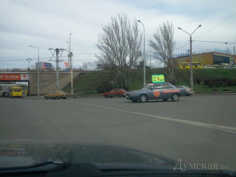 Страховщики еще пол беды.. Сегодня на пл. Деревянко огромная реклама красовалась селедки по 20грн (Таврия В постаралась), на двух прицепах!! , закрывая обзор на кольцо автомобилистам. А посреди островка валялись два кулька, набитых мусором..