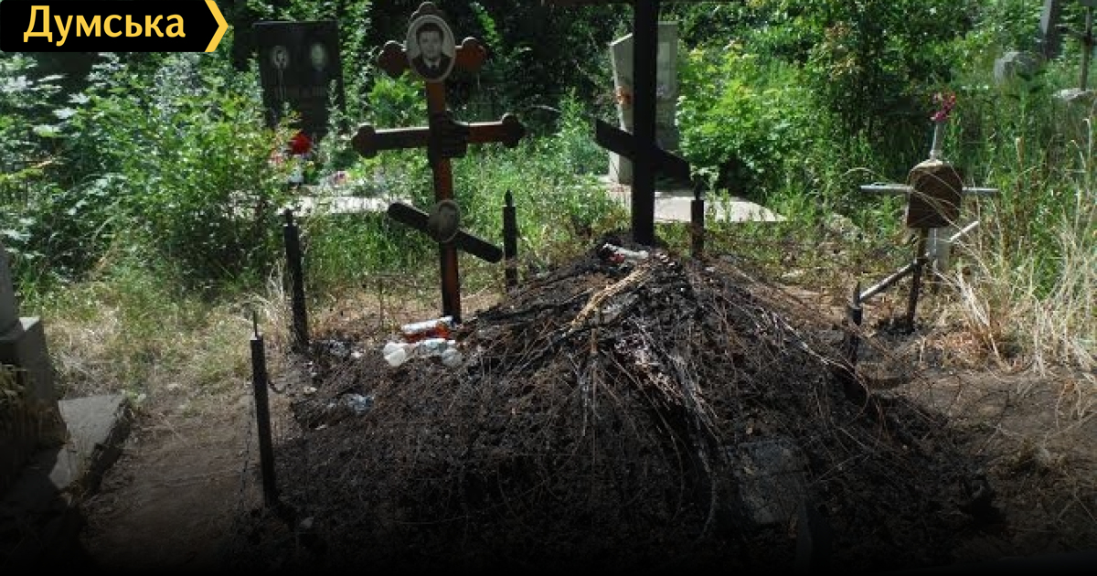 На месте, где похоронен 32-летний одессит, погибший на 5-м этаже Дома профсоюзов, неизвестные устроили костёр из принесённых родственниками венков. В результате также обгорел могильный крест.