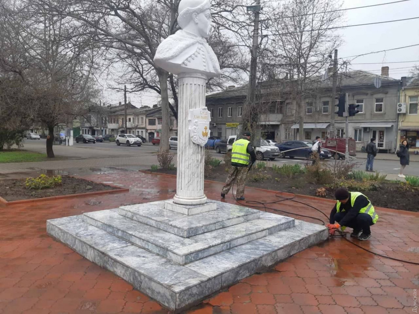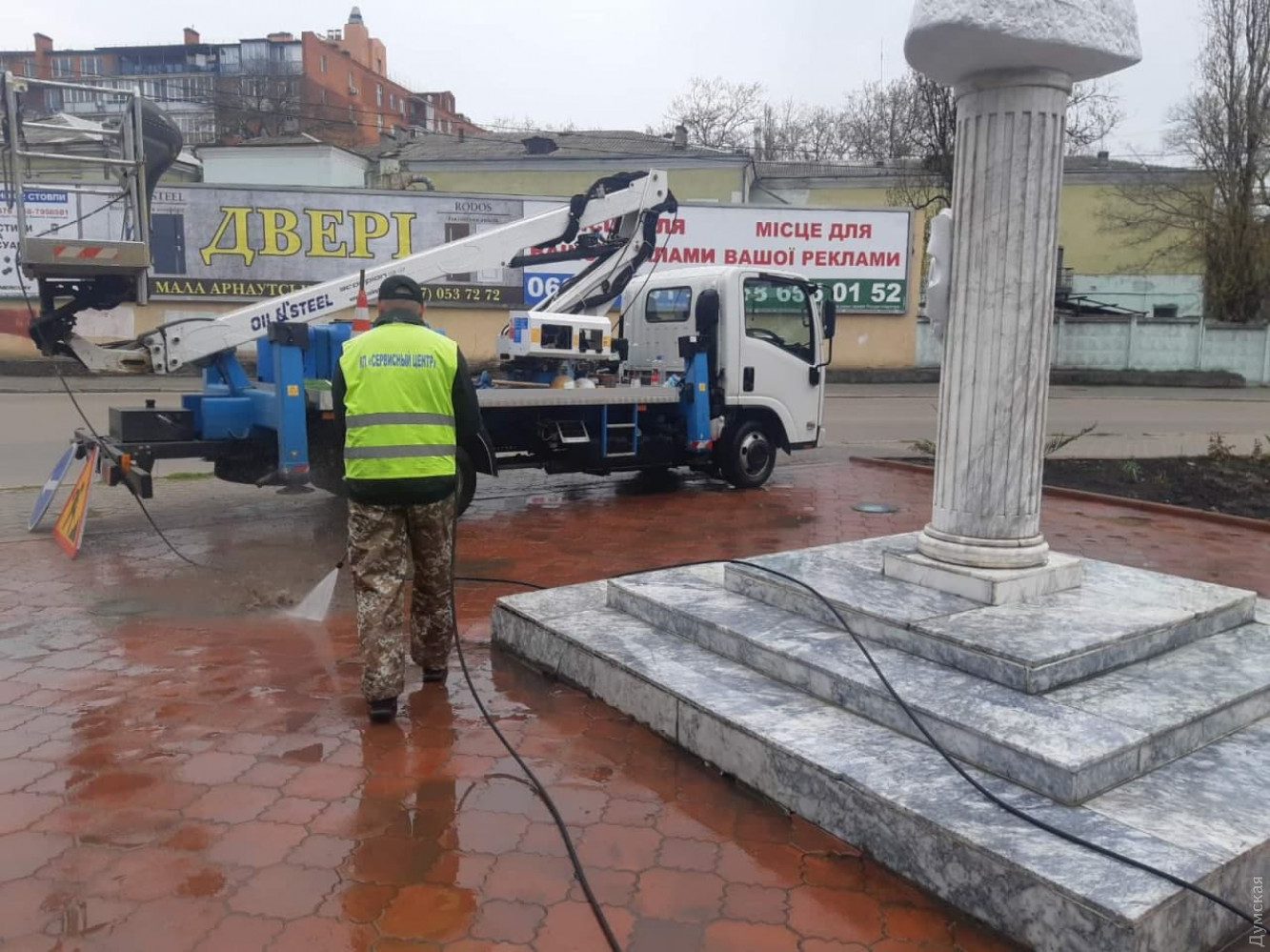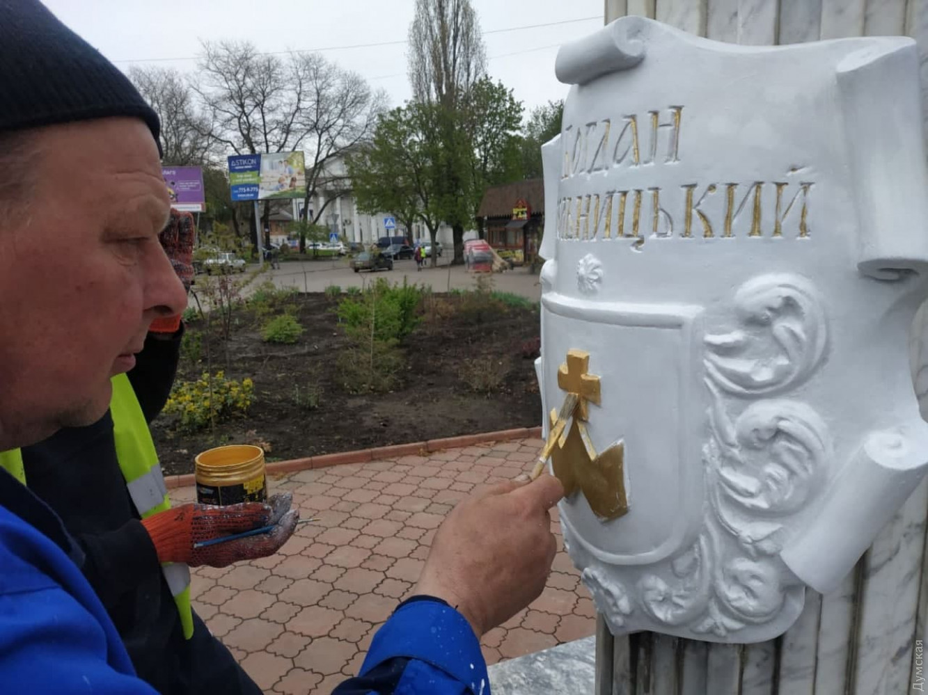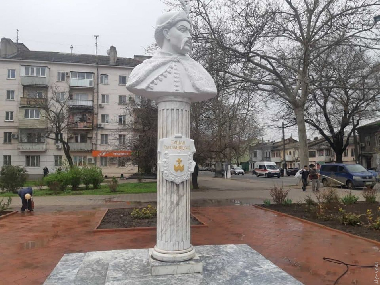 Текущий ремонт памятника гетману Богдану Хмельницкому, что на углу одноименной улицы и улицы Мечникова, провели сегодня работники одесского КП «Сервисный центр». Как сообщили в департаменте городского хозяйства, им занимались специалисты участка по обслуживанию объектов монументального искусства, которые не являются культурным наследием. Бюст и постамент помыли, освежили покраску, а еще обновили буквы на табличке. Памятник Хмельницкому возле кинотеатра «Родина» открыли в 2002 году. Его авторы — одесский скульптор Александр Князик и архитектор Владимир Глазырин. Удачным его назвать нельзя: создатели переборщили, экспериментируя с пропорциями, и одесситы прозвали композицию «чупа-чупсом». Отметим, что в 1954-1958 годах в Одессе был еще один памятник создателю первого украинского государства. Он стоял у Александровской колонны в парке Шевченко. Потом его перенесли в Килию: в 1620 году будущий гетман, попавший в османский плен в битве у Цецоры, был продан здесь в рабство, в котором провел два года. СМЕРТЬ РОСІЙСЬКИМ ОКУПАНТАМ! Помітили помилку? Виділяйте слова з помилкою та натискайте control-enter |