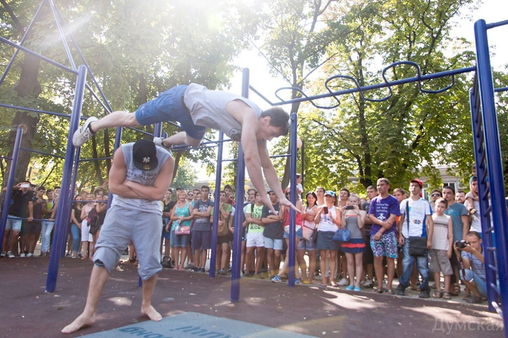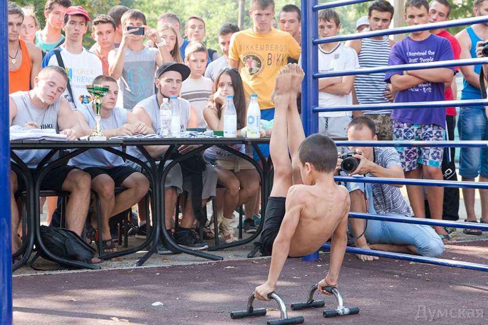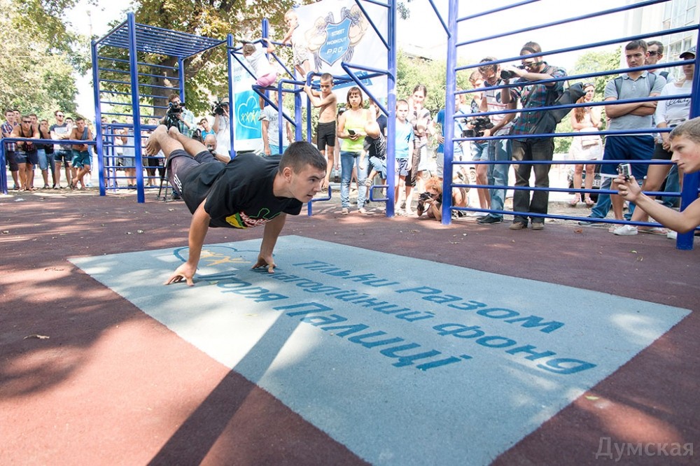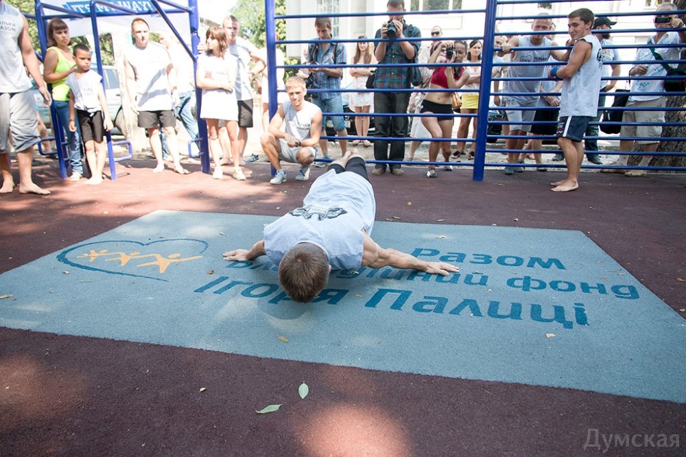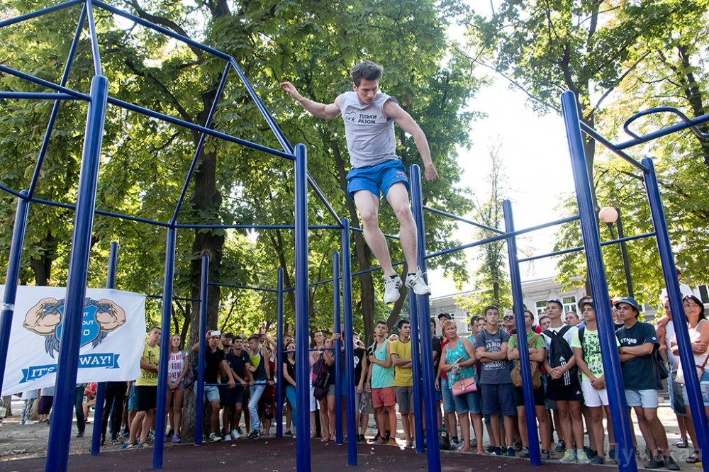 В минувшую субботу на пересечении Александровского проспекта и улицы Жуковского прошел отборочный турнир на Всеукраинский чемпионат по Street workout (упражнения на турниках, брусьях, шведских стенках и т.д.), который состоится 12 сентября в Киеве. В соревновании приняли участие 14 спортсменов из разных городов Украины. Самому младшему участнику еще нет десяти. Наиболее зрелищным стал этап Freestyle, где спортсмены должны были показать поставленный номер, в котором в равной степени оценивались не только силовые характеристики и техника, но и артистизм. Турнир проходил на единственной в городе специально оборудованной для этого вида спорта площадке, установленной при поддержке благотворительного фонда «Тільки разом» экс-губернатора Одесской области Игоря Палицы. Площадка была полностью спроектирована самими спортсменами с учетом всех необходимых для этого уличного спорта особенностей. Ее обустройство обошлось фонду в 278 тысяч гривен. По словам представителя «Тільки разом» Николая Покровского, создание специализированной площадки для уличных тренировок – это логическое продолжение сотрудничества одесской областной ассоциации Street workout и благотворительного фонда. «Игорь Палица сам ведет здоровый образ жизни и обожает спорт, именно поэтому он так легко откликнулся на просьбу областной ассоциации по Street Workout. В 2014 году мы помогли организовать всеукраинский чемпионат в Одессе на морском вокзале. А до ноября этого года наш фонд установит еще шесть подобных площадок в Одессе и области», — отметил Покровский. СМЕРТЬ РОСІЙСЬКИМ ОКУПАНТАМ! Помітили помилку? Виділяйте слова з помилкою та натискайте control-enter