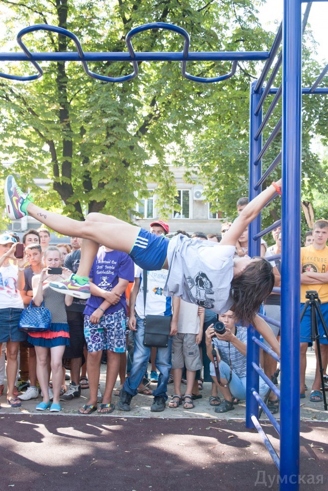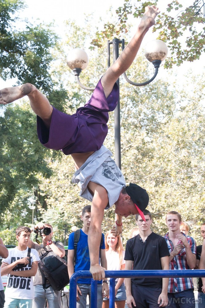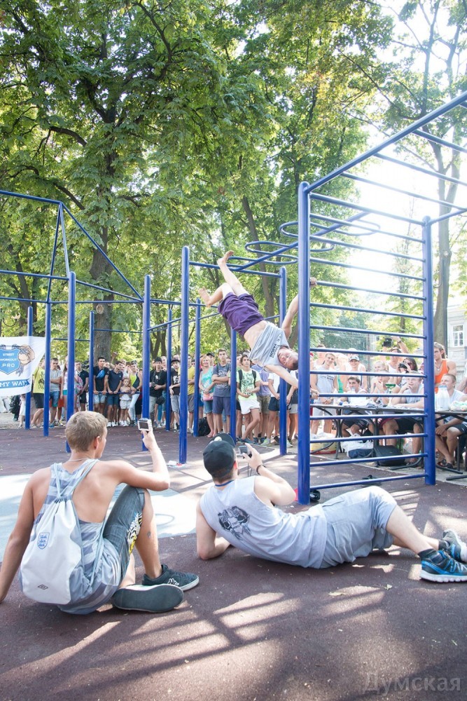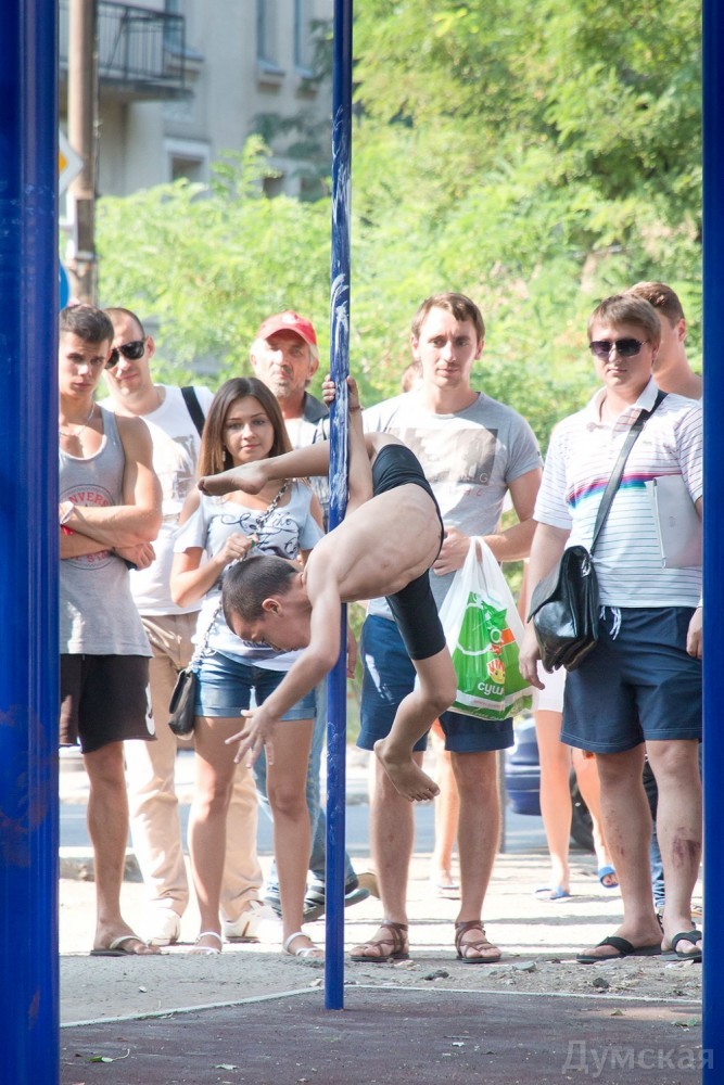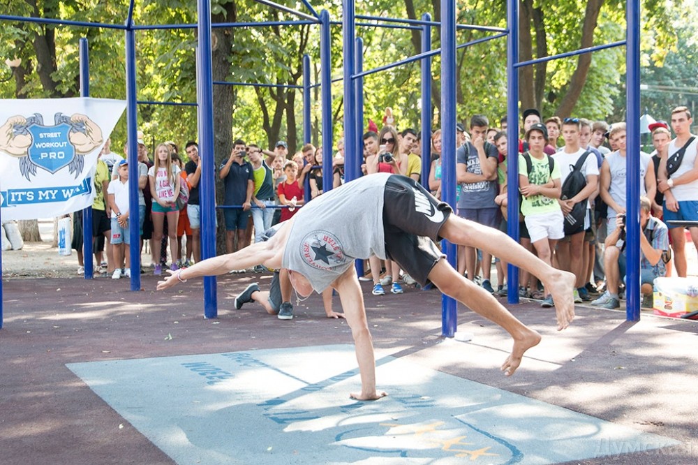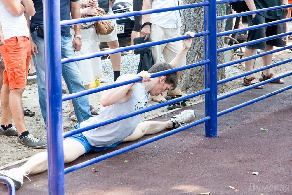 В минувшую субботу на пересечении Александровского проспекта и улицы Жуковского прошел отборочный турнир на Всеукраинский чемпионат по Street workout (упражнения на турниках, брусьях, шведских стенках и т.д.), который состоится 12 сентября в Киеве. В соревновании приняли участие 14 спортсменов из разных городов Украины. Самому младшему участнику еще нет десяти. Наиболее зрелищным стал этап Freestyle, где спортсмены должны были показать поставленный номер, в котором в равной степени оценивались не только силовые характеристики и техника, но и артистизм. Турнир проходил на единственной в городе специально оборудованной для этого вида спорта площадке, установленной при поддержке благотворительного фонда «Тільки разом» экс-губернатора Одесской области Игоря Палицы. Площадка была полностью спроектирована самими спортсменами с учетом всех необходимых для этого уличного спорта особенностей. Ее обустройство обошлось фонду в 278 тысяч гривен. По словам представителя «Тільки разом» Николая Покровского, создание специализированной площадки для уличных тренировок – это логическое продолжение сотрудничества одесской областной ассоциации Street workout и благотворительного фонда. «Игорь Палица сам ведет здоровый образ жизни и обожает спорт, именно поэтому он так легко откликнулся на просьбу областной ассоциации по Street Workout. В 2014 году мы помогли организовать всеукраинский чемпионат в Одессе на морском вокзале. А до ноября этого года наш фонд установит еще шесть подобных площадок в Одессе и области», — отметил Покровский. СМЕРТЬ РОСІЙСЬКИМ ОКУПАНТАМ! Помітили помилку? Виділяйте слова з помилкою та натискайте control-enter