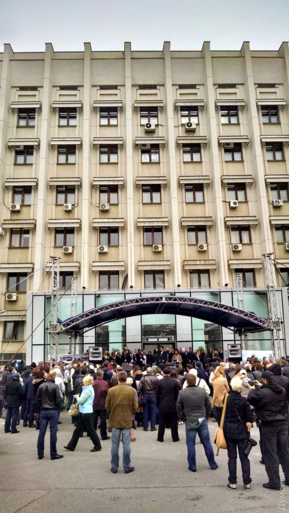 Присутствующие на церемонии обратили внимание, что прежде руководители одесской администрации предпочитали перекрывать входы в здание бетонными блоками, а сейчас — прозрачным стеклом.