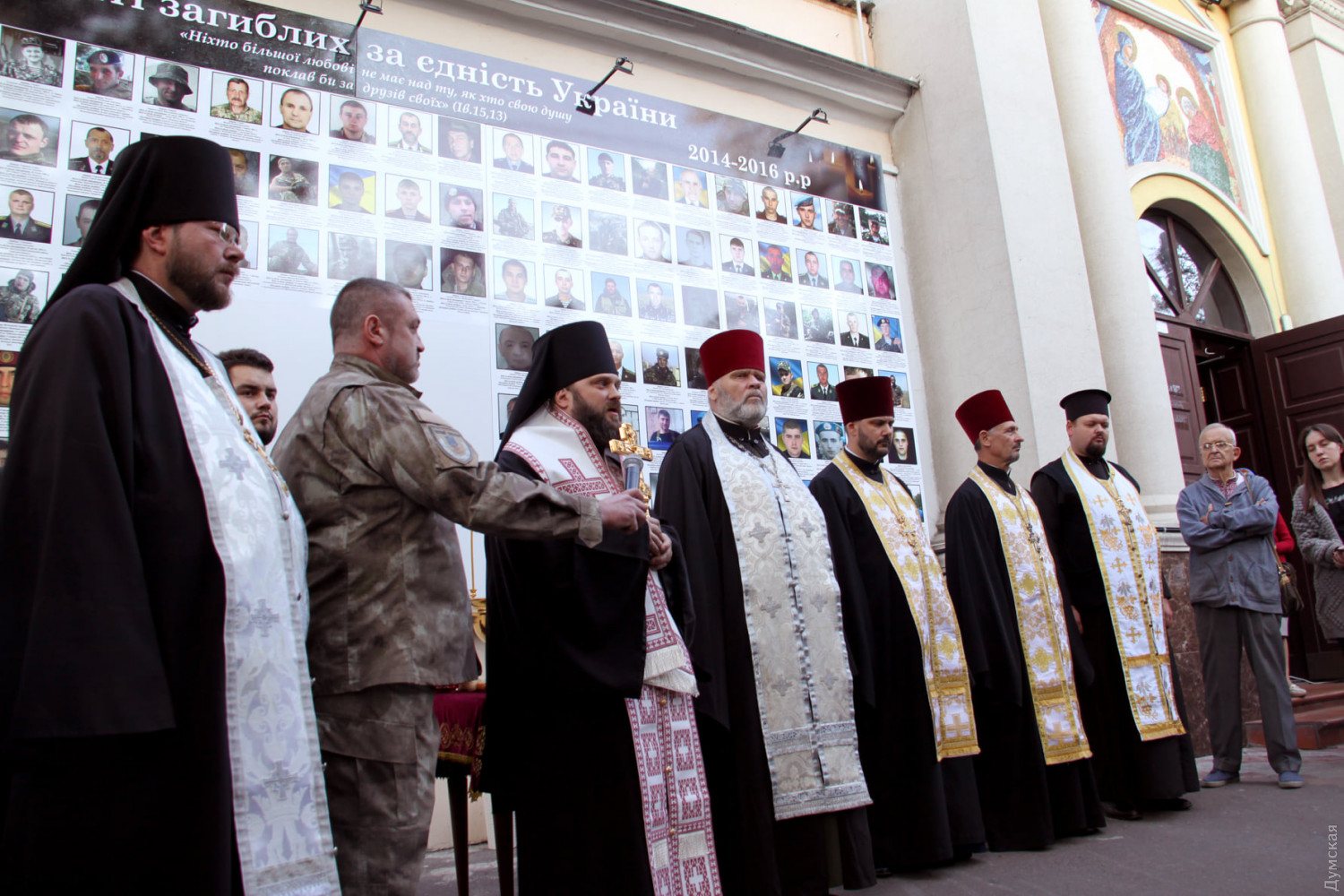 Стену памяти с фотографиями украинских военнослужащих и добровольцев, погибших на фронте российско-украинской войны в 2014-2020 годах, открыли вчера, в День защитника Украины, возле кафедрального собора Рождества Христова Православной церкви Украины на улице Пастера. Об этом сообщили в Южном межрегиональном отделе Украинского института национальной памяти. На открытии присутствовали ветераны войны, представители общественности, священнослужители ПЦУ. Епископ Одесский и Балтский Павел в сослужении других священников и военных капелланов освятил стену памяти. Под исполнение траурной песни «Прине кача» собравшиеся возложили к мемориалу цветы и почтили память погибших минутой молчания. СМЕРТЬ РОСІЙСЬКИМ ОКУПАНТАМ! Помітили помилку? Виділяйте слова з помилкою та натискайте control-enter |