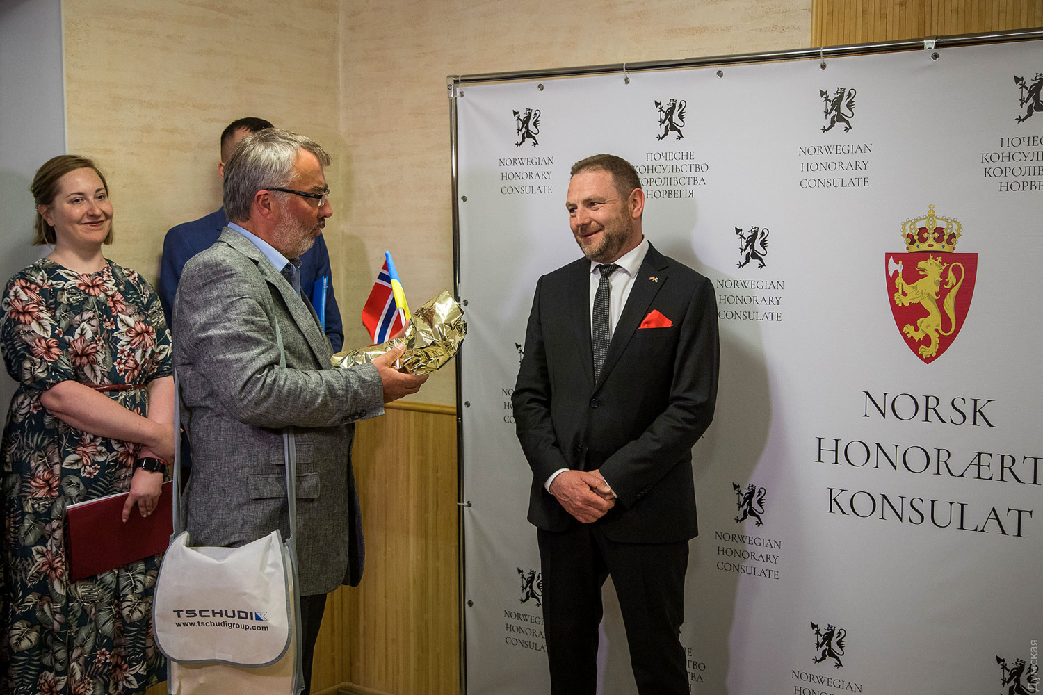 В Одессе открылось почетное консульство Королевства Норвегия — первое в УкраинеВ полку иностранных почетных консульств прибыло. Новое дипломатическое представительство, на этот раз Королевства Норвегия, открыло свои двери на первом этаже нового здания на Мечникова, 2/1. В торжественном мероприятии принял участие Чрезвычайный и полномочный посол Норвегии в Украине Уле Терье Хорпестад, а почетным консулом стал одесский бизнесмен Олег Фомичев. «Это первое почетное консульство нашей страны в Украине, — отметил норвежский посол. — Очень приятно видеть, что его разместили в таком современном помещении. Главными заданиями Олега Фомичева на этом посту станет защита и помощь норвежским гражданам, проживающим или посещающим Украину, а также развитие дружбы между нашими странами». По мнению дипломата, сейчас взаимоотношения между нашими странами укрепляются. «Это очень удачное время для открытия консульства, — уверен представитель королевства. — Наши инвесторы все чаще вкладывают в совместные предприятия, особенно в альтернативной энергетике. Мы поддерживаем европейский выбор Украины и ее территориальную целостность». По словам Олега Фомичева, юрисдикция консульства распространяется на три области — Одесскую, Николаевскую и Херсонскую. «Я уверен, что открытие офиса в Одессе позволит развивать наши культурные и экономические связи», — подчеркнул Фомичев. СМЕРТЬ РОСІЙСЬКИМ ОКУПАНТАМ! Помітили помилку? Виділяйте слова з помилкою та натискайте control-enter |